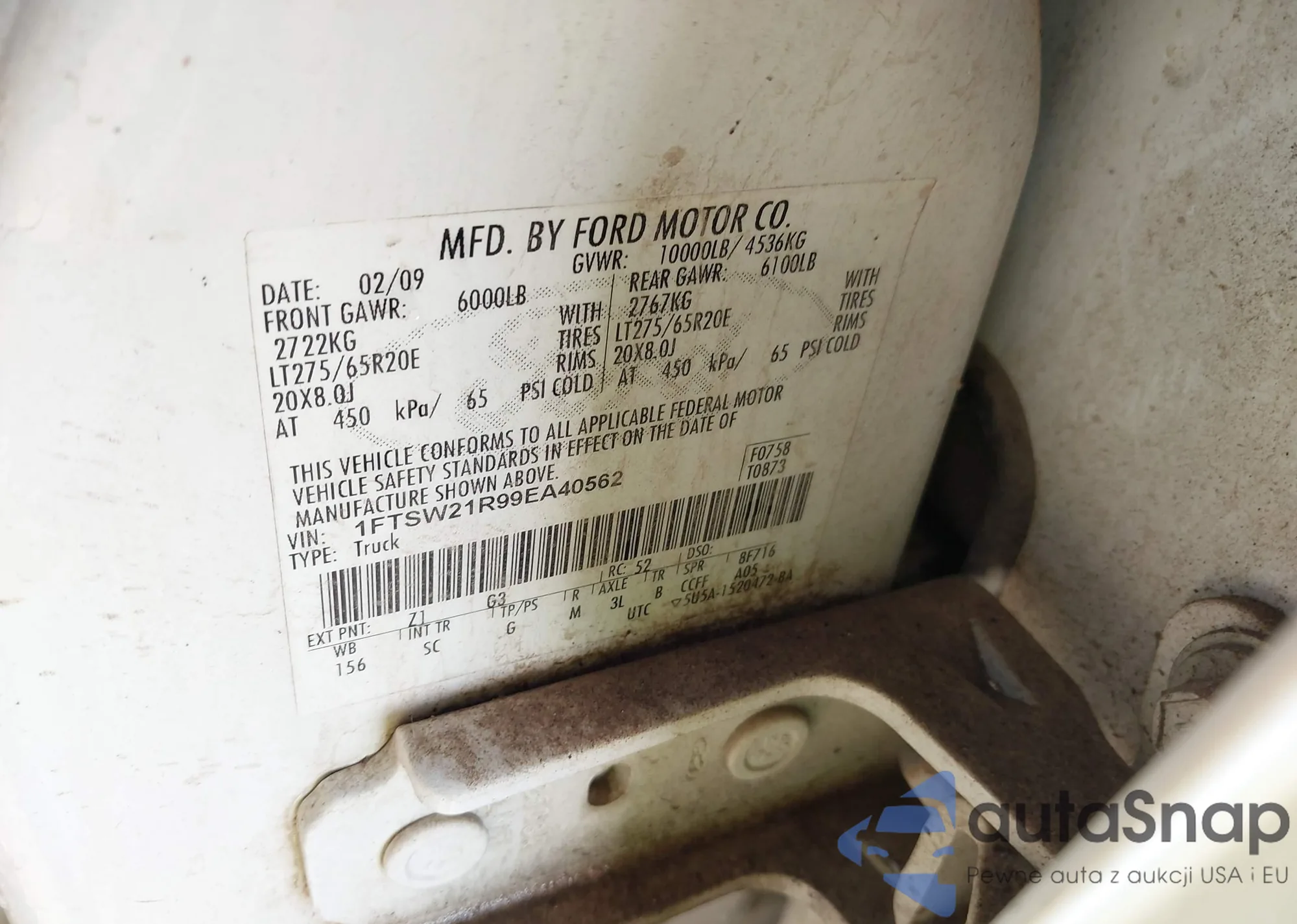 LOT: 43986045 VIN: 1FTSW21R99EA40562