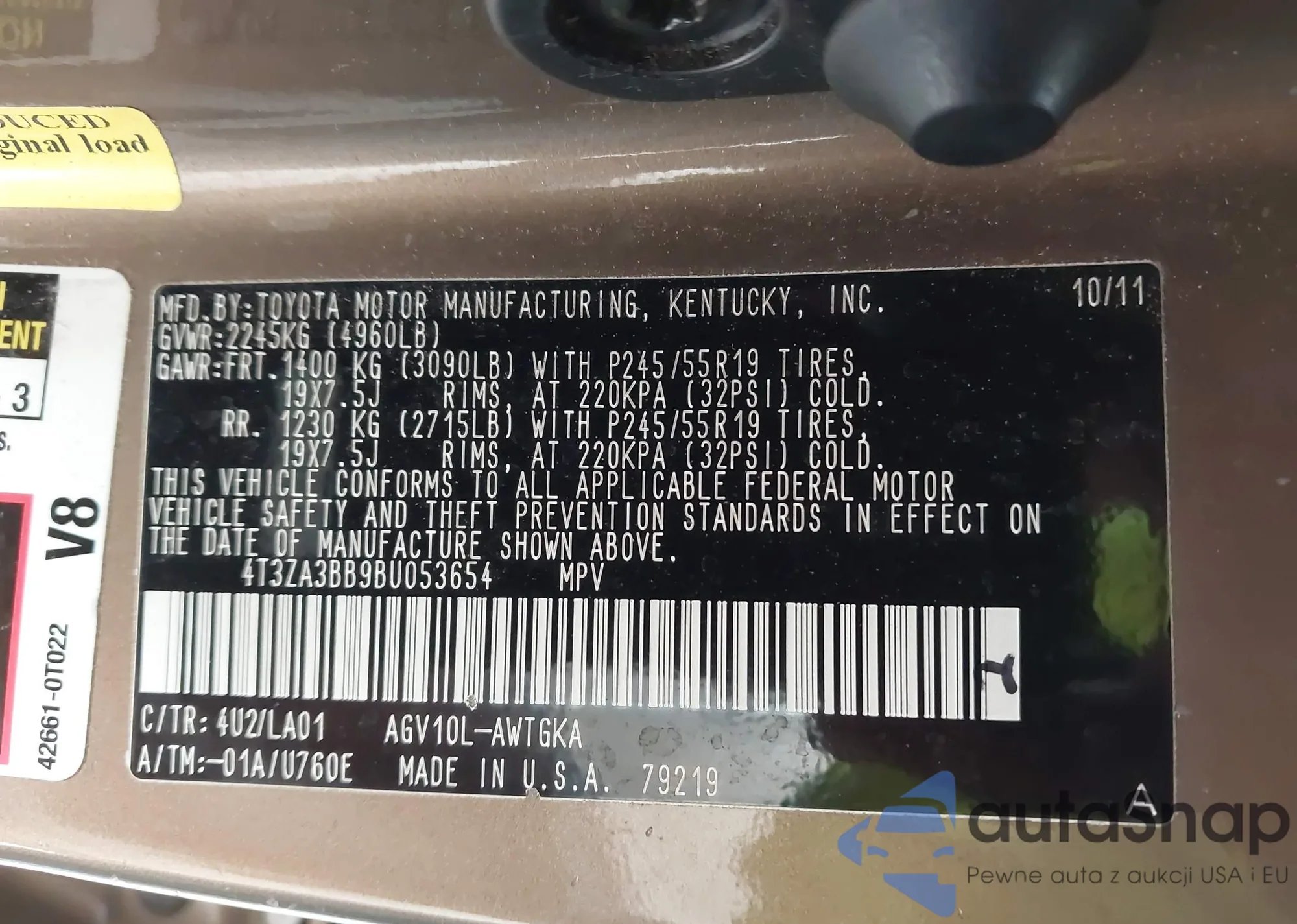• VIN 4T3ZA3BB9BU053654