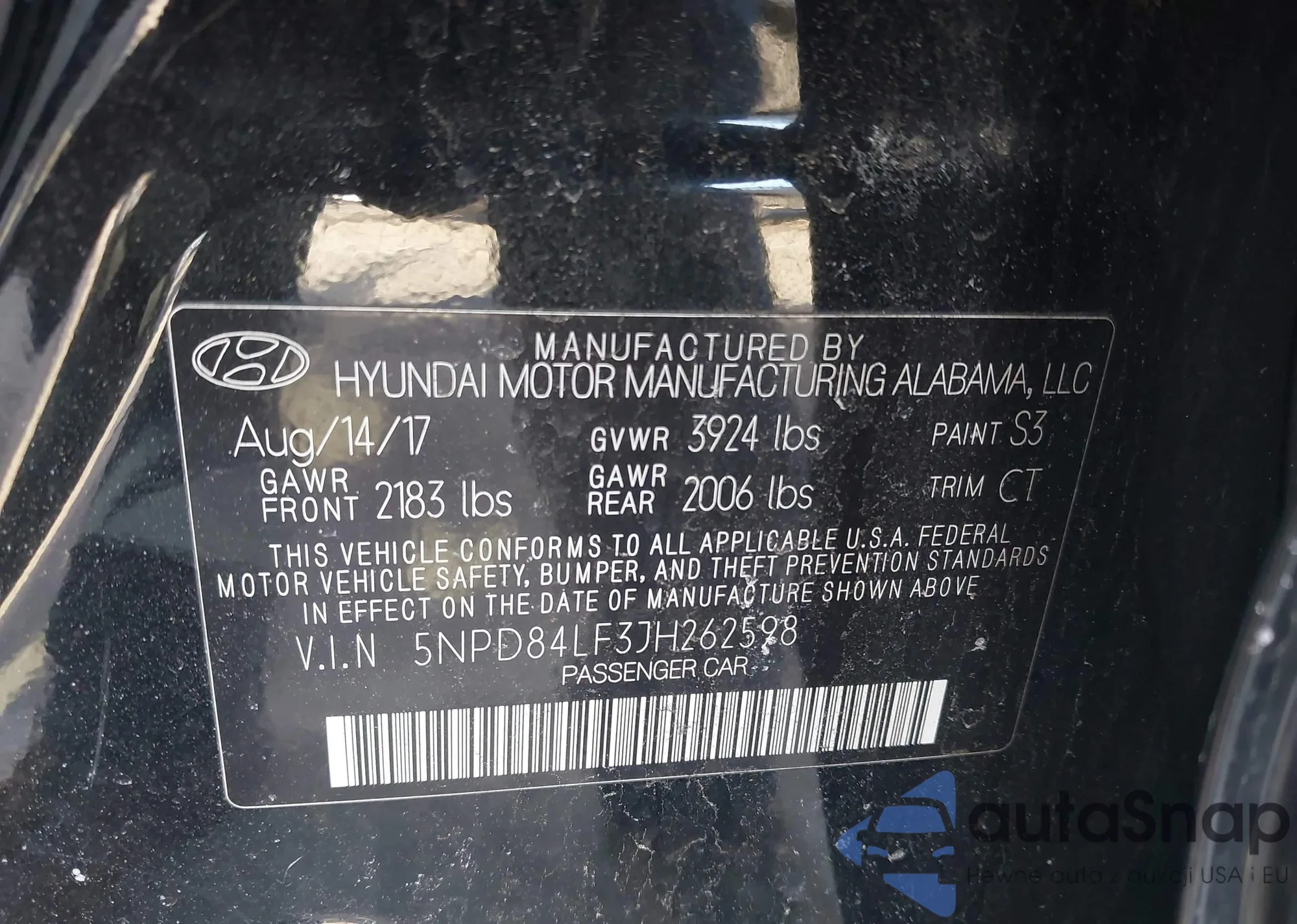 LOT: 43987673 VIN: 5NPD84LF3JH262598