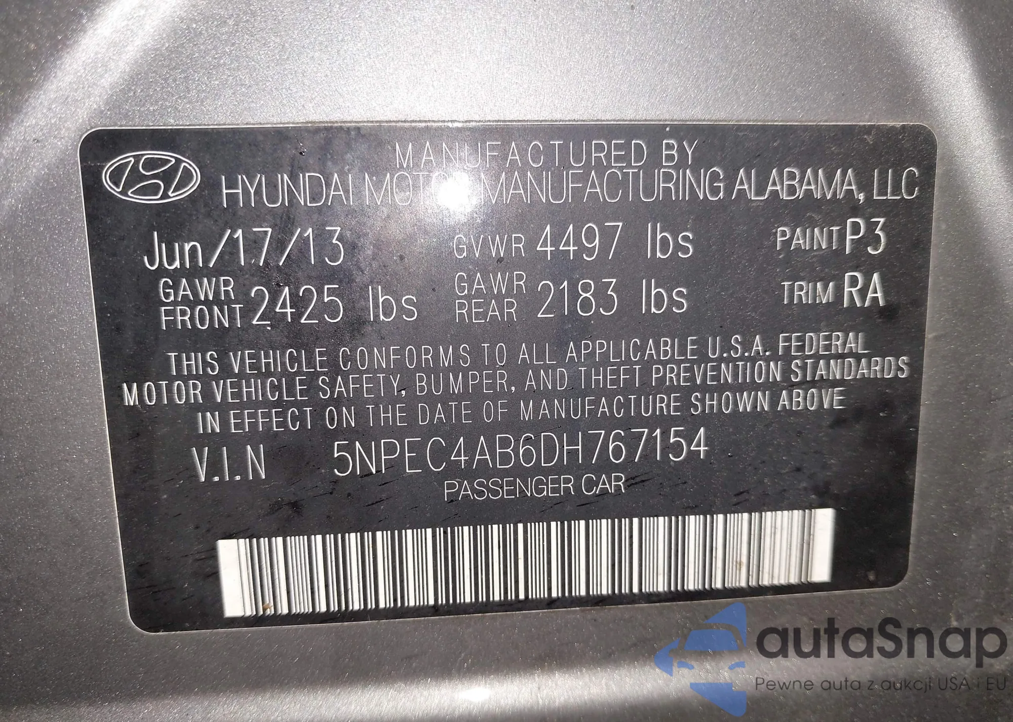 • VIN 5NPE24AF9HH563346