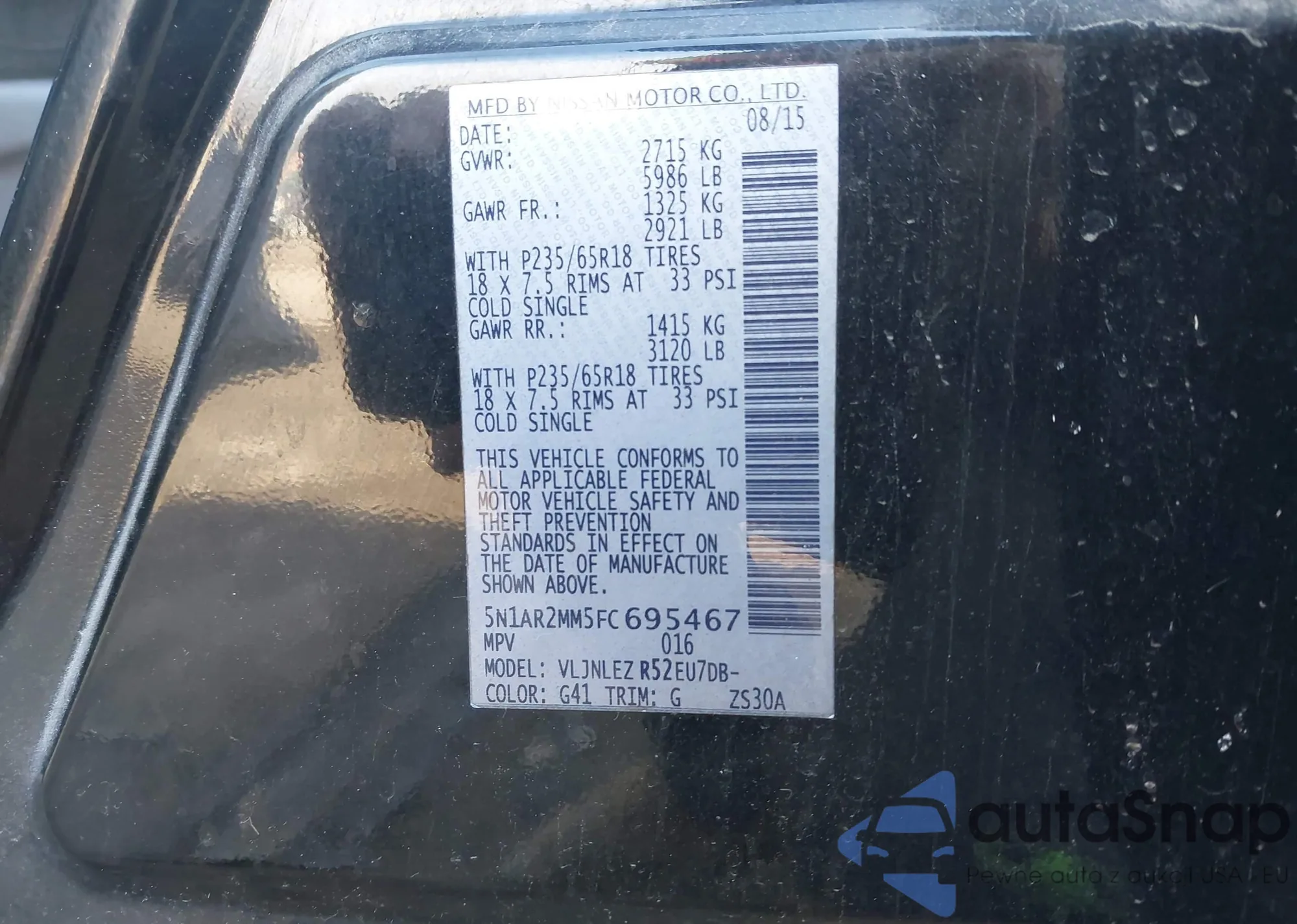 LOT: 43756355 VIN: 3N1AB8CV1RY275418
