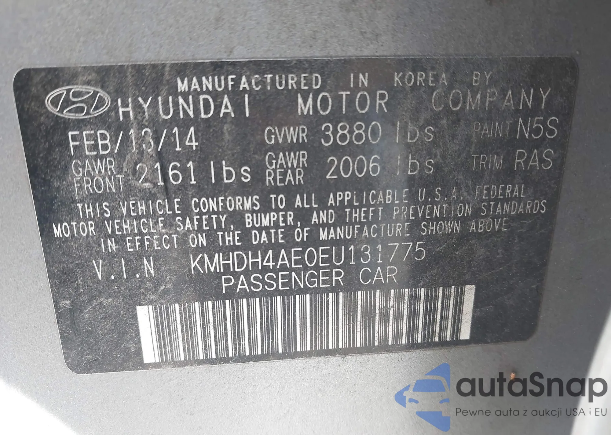 • VIN KMHDH4AE0EU131775