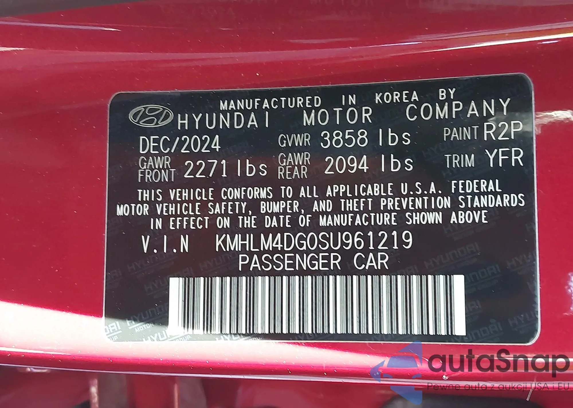 LOT: 44150636 VIN: KMHLM4DG0SU961219