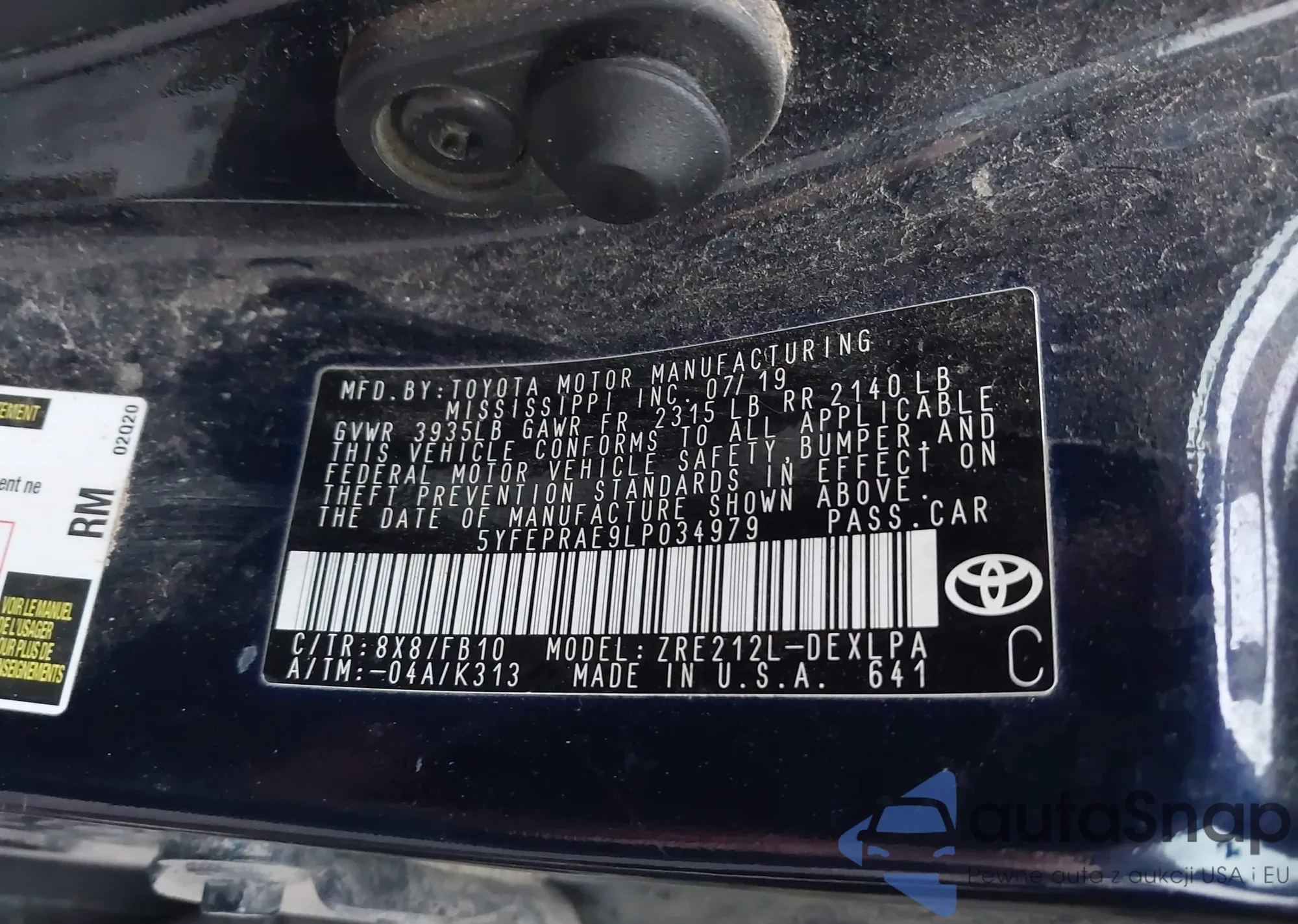 LOT: 43824787 VIN: 5YFEPRAE9LP034979