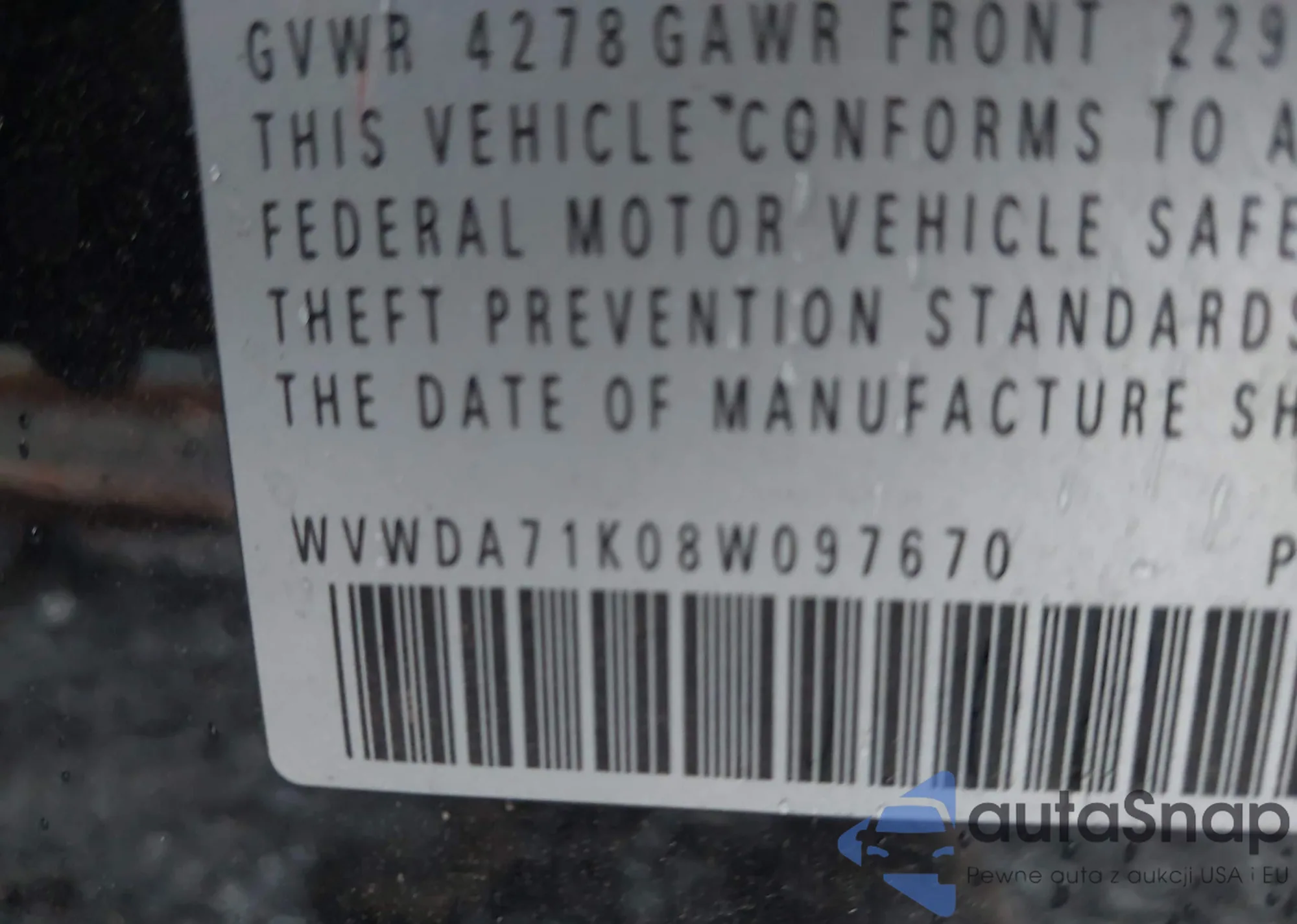• VIN WVWDA71K08W097670