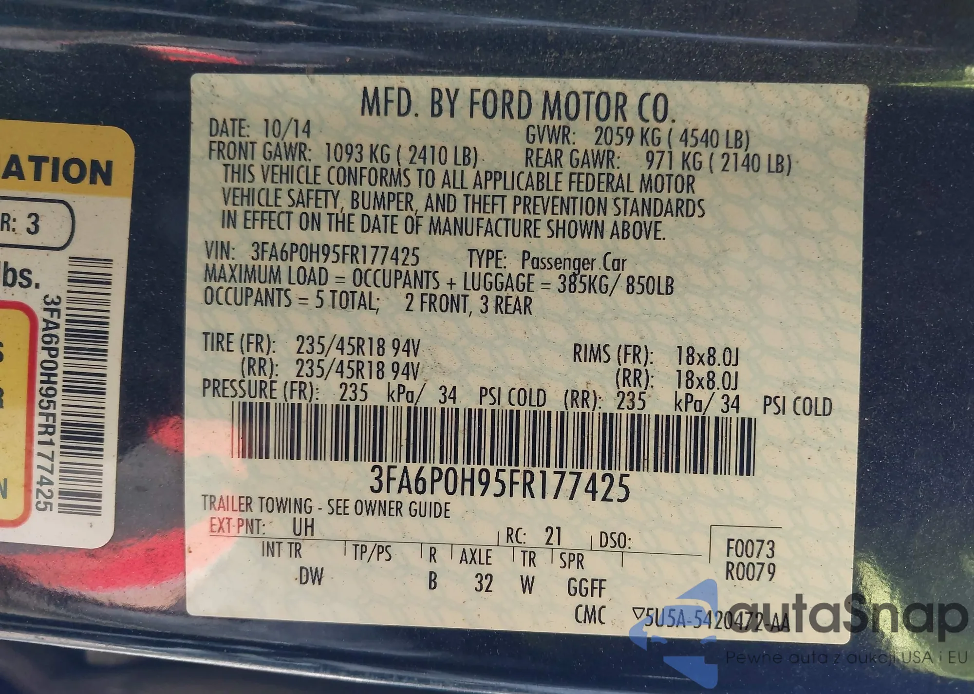 LOT: 43835081 VIN: 3FA6P0H95FR177425