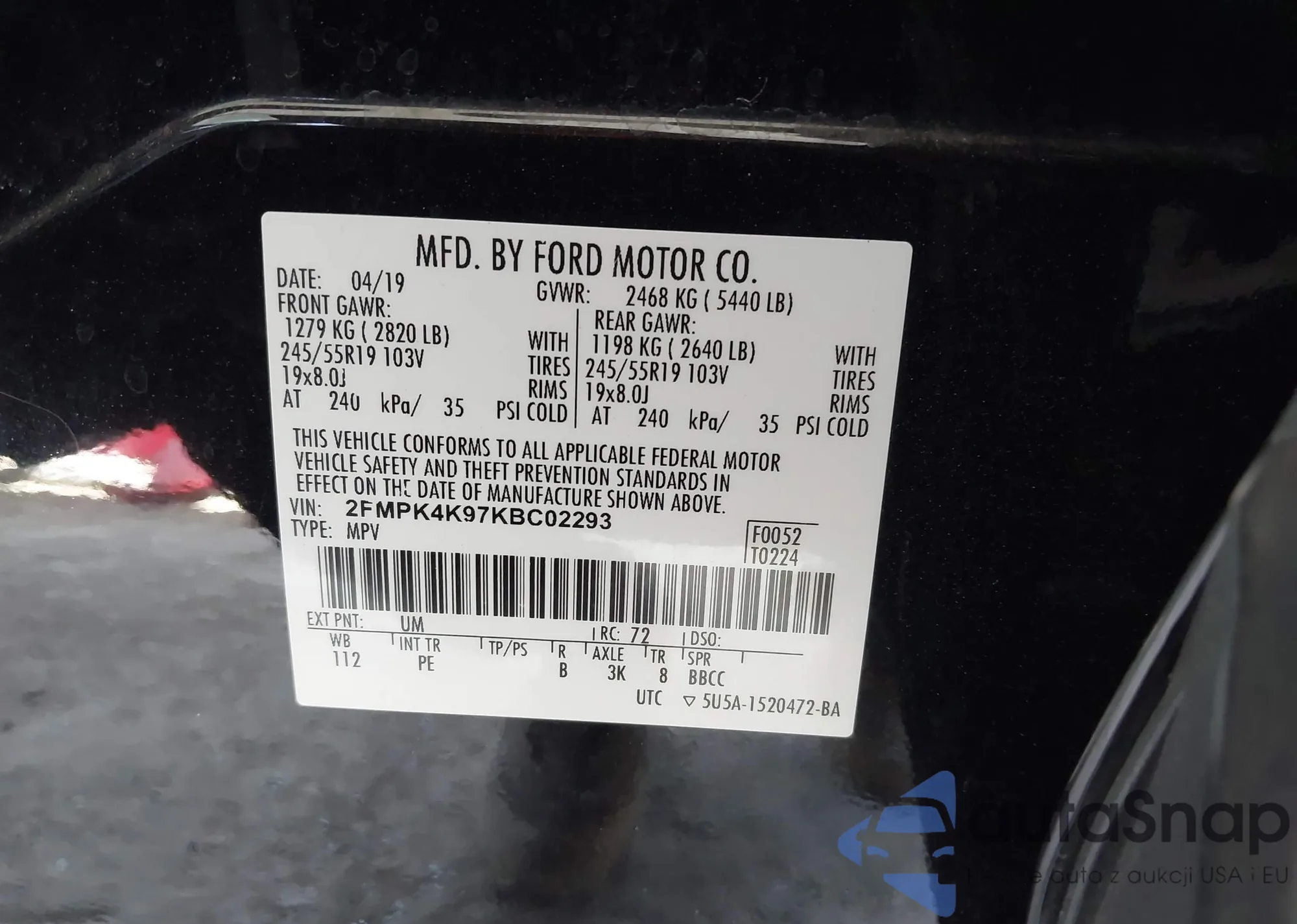• VIN 1FM5K8D86HGE21542