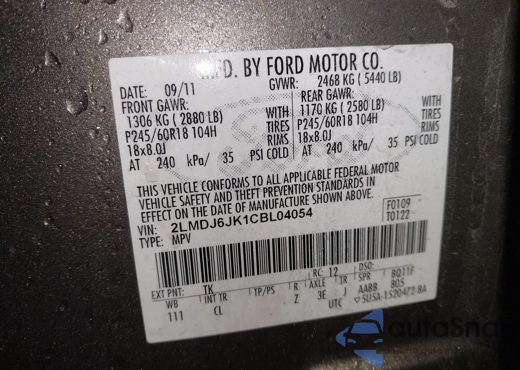 • VIN 2LMDJ6JK1CBL04054
