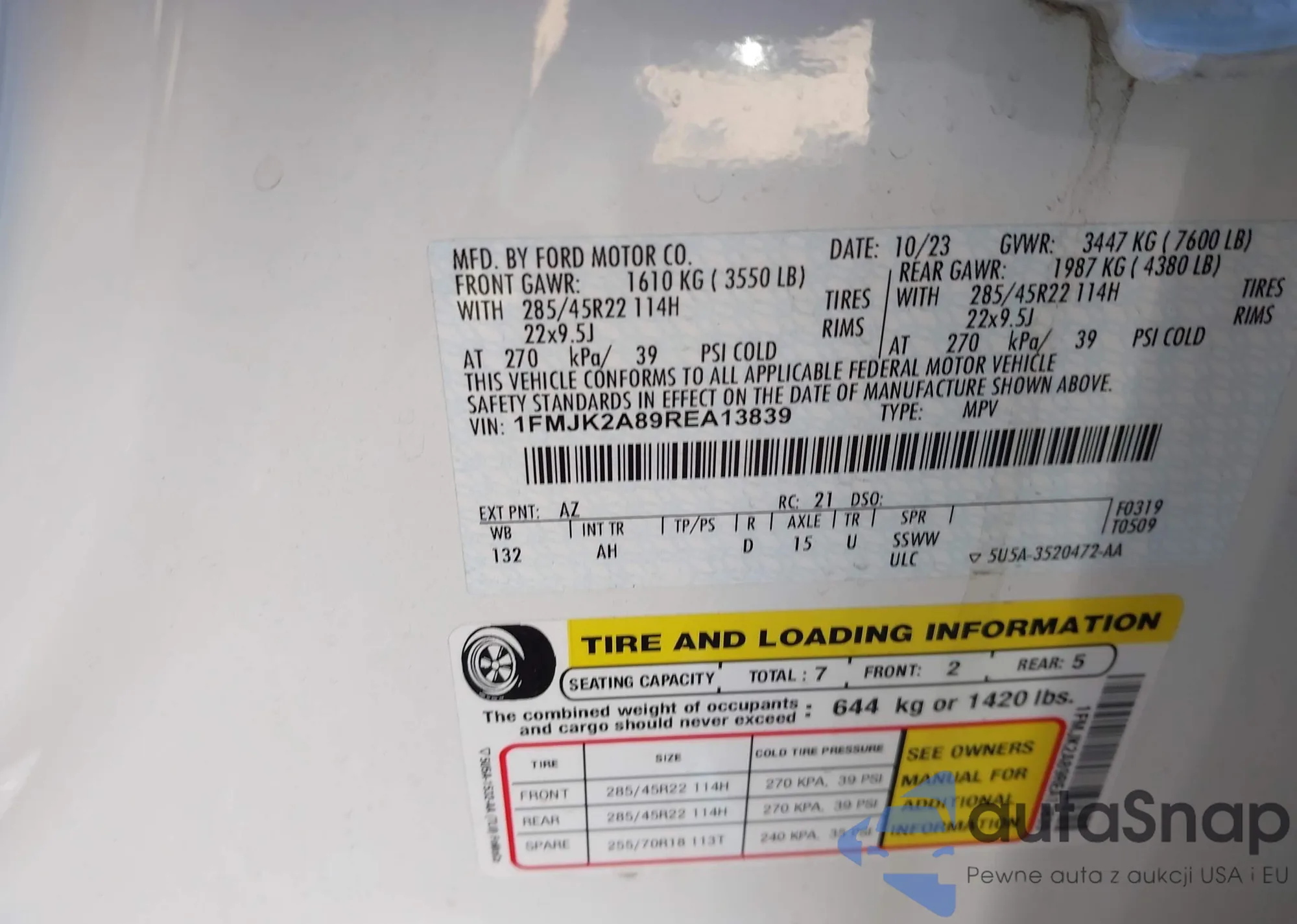 LOT: 43934549 VIN: 1FMJK2A89REA13839