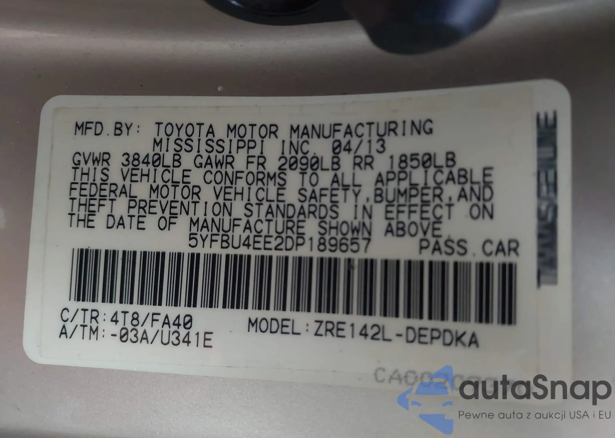 • VIN 5YFBU4EE2DP189657