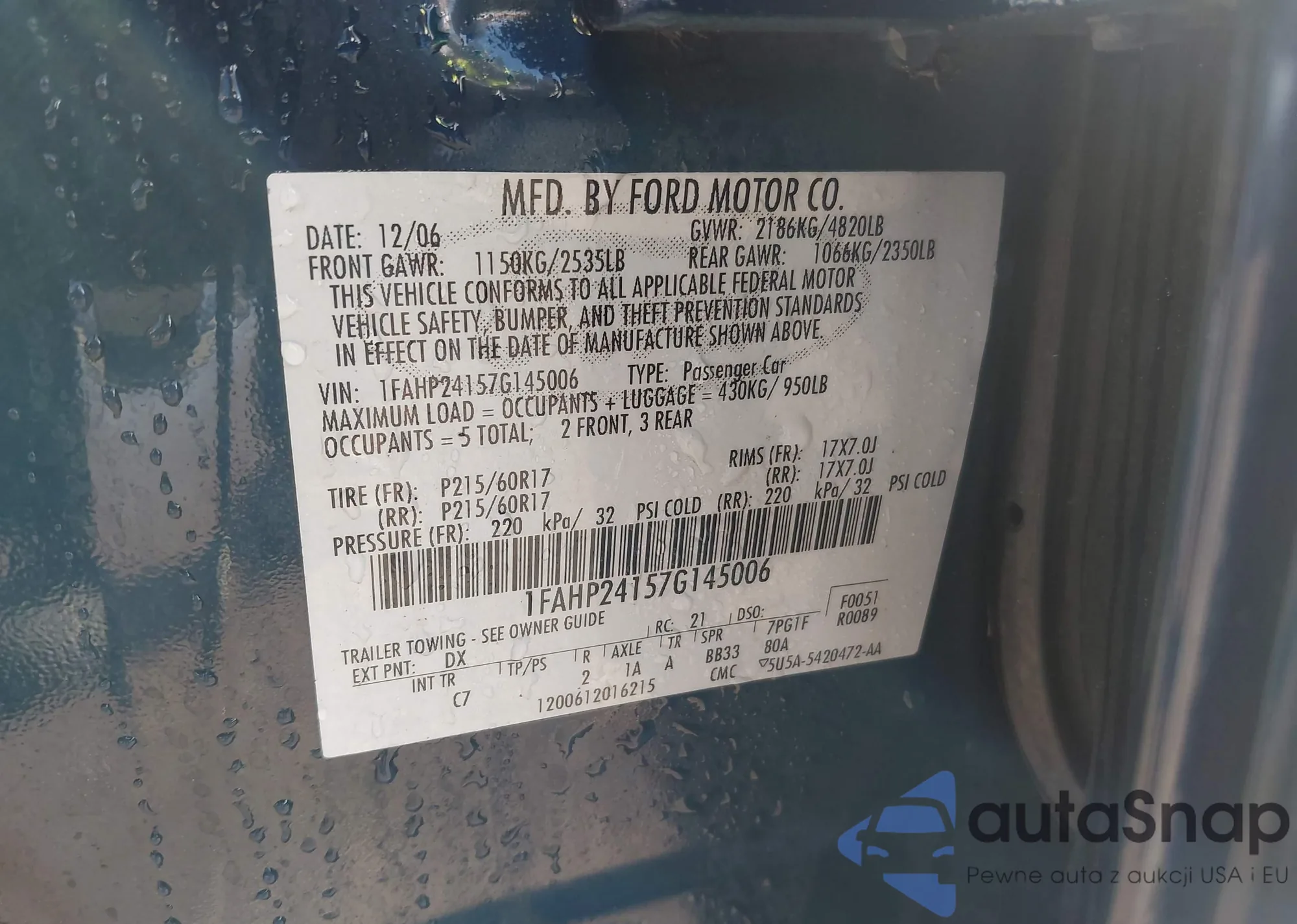 LOT: 44091093 VIN: 5NPEU46C06H091933