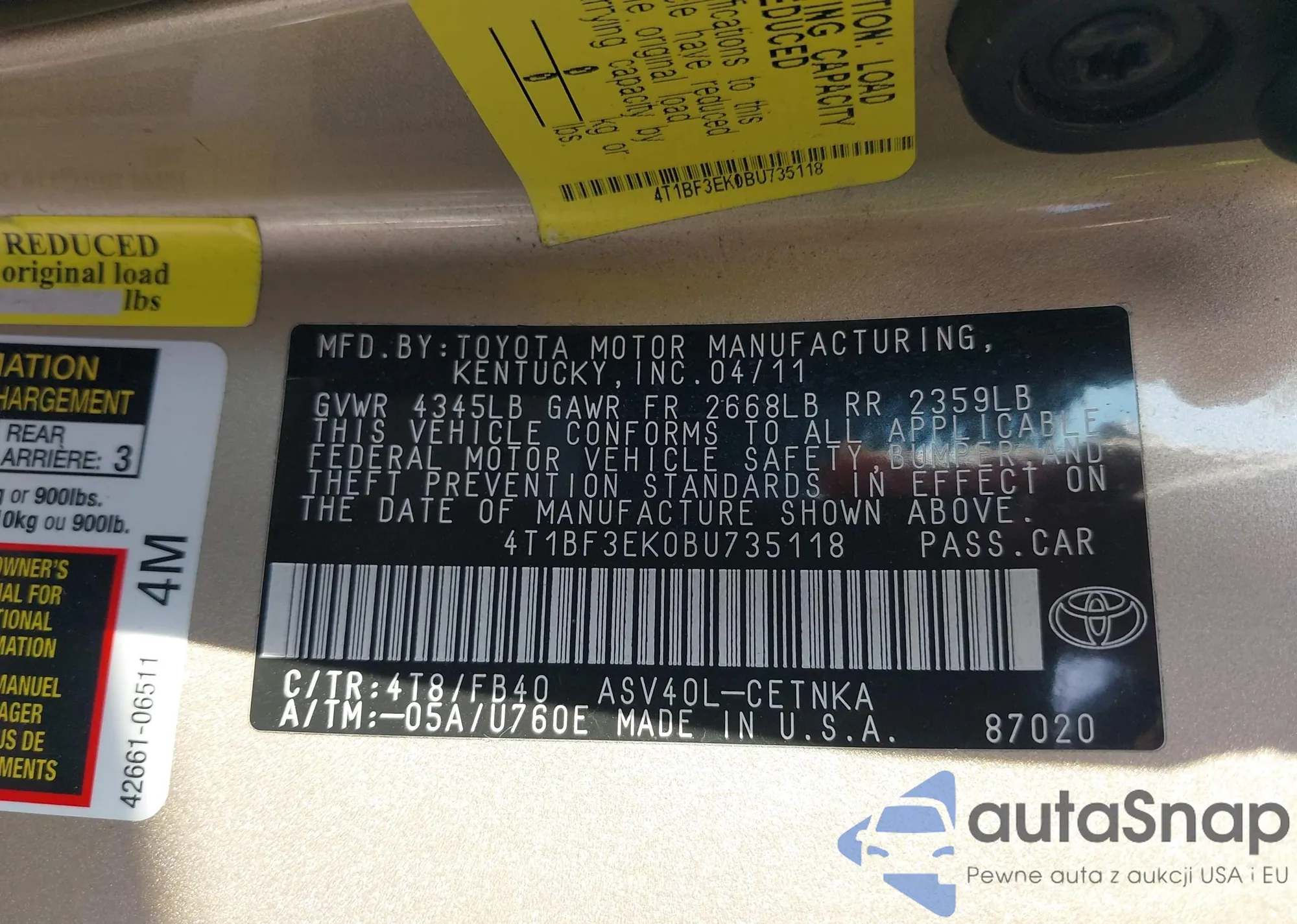 • VIN 4T1BF3EK0BU735118