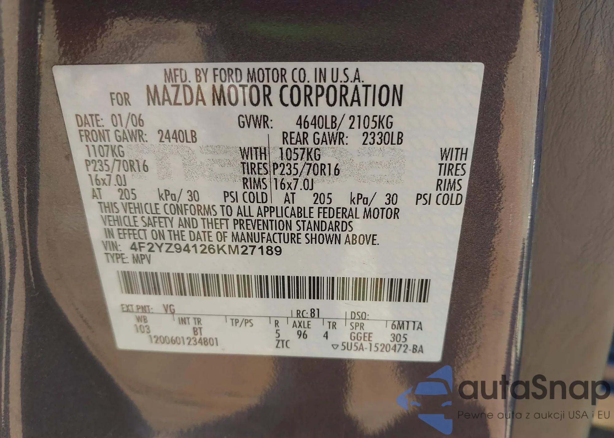 • VIN KNAFG528997282758