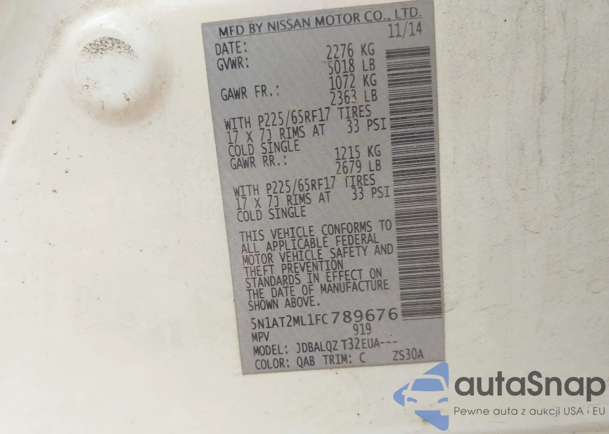 LOT: 43383949 VIN: 5N1AT2ML1FC789676