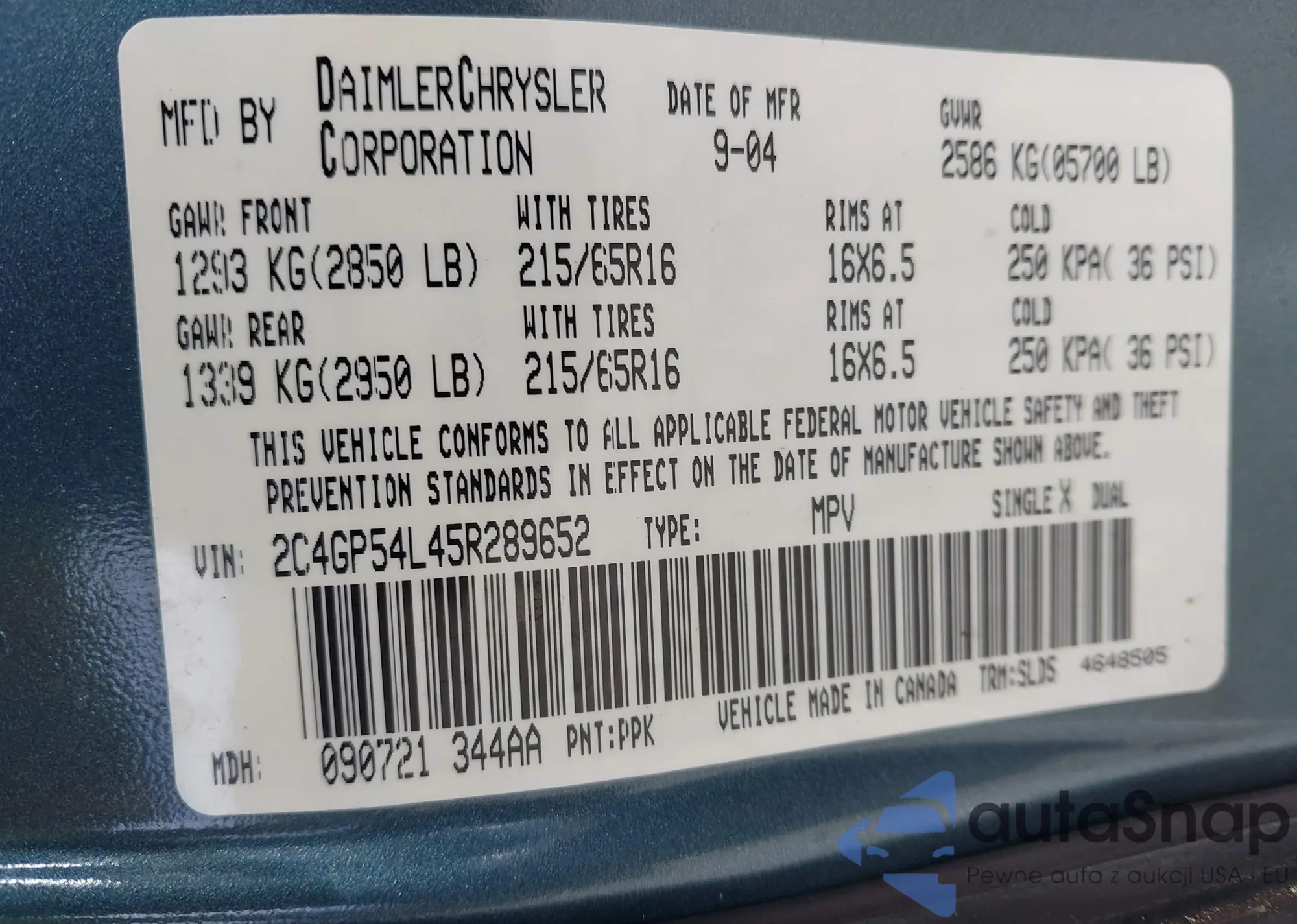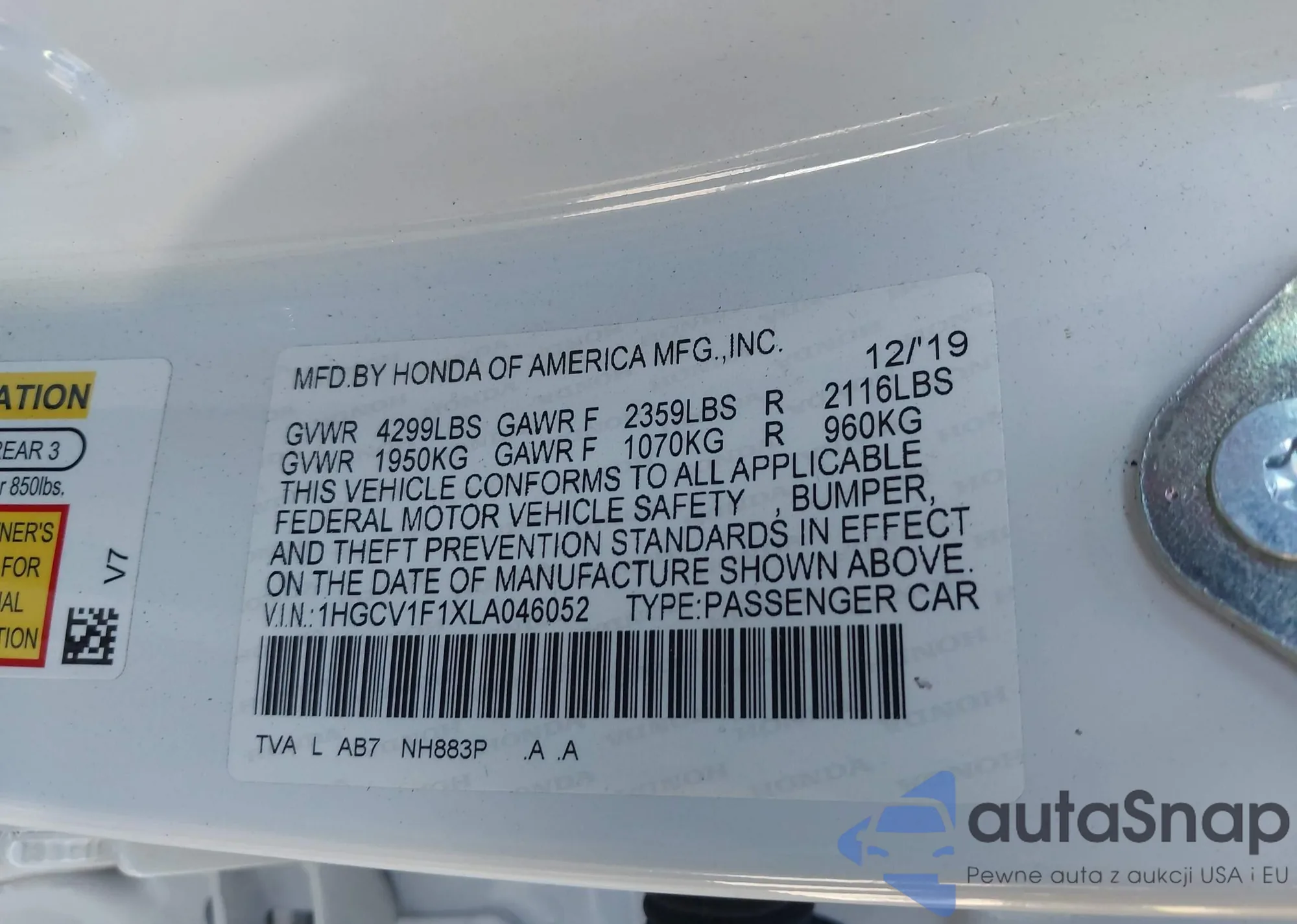 LOT: 43520024 VIN: 1HGCP36879A049583