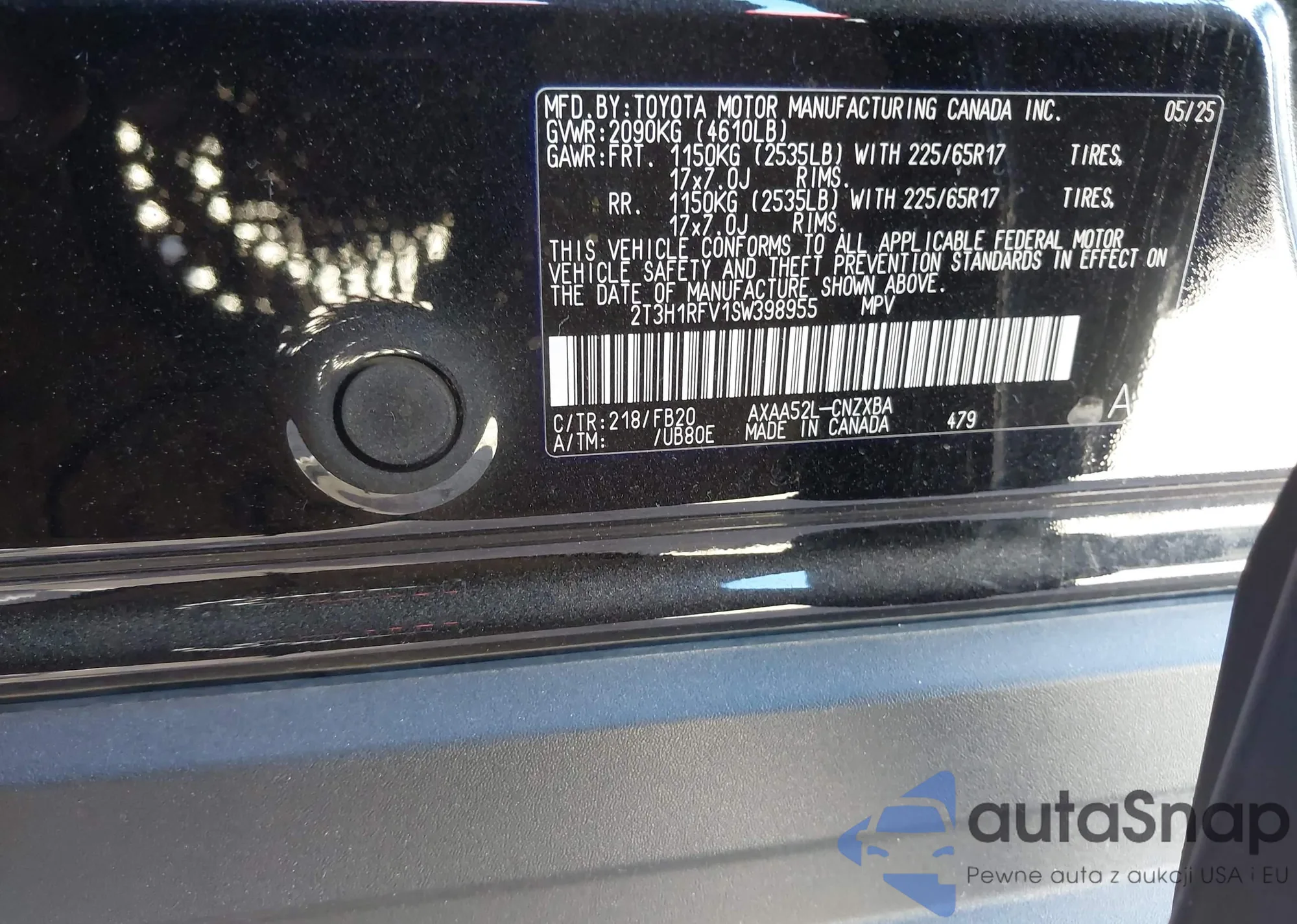 • VIN 2T3H1RFV1SW398955