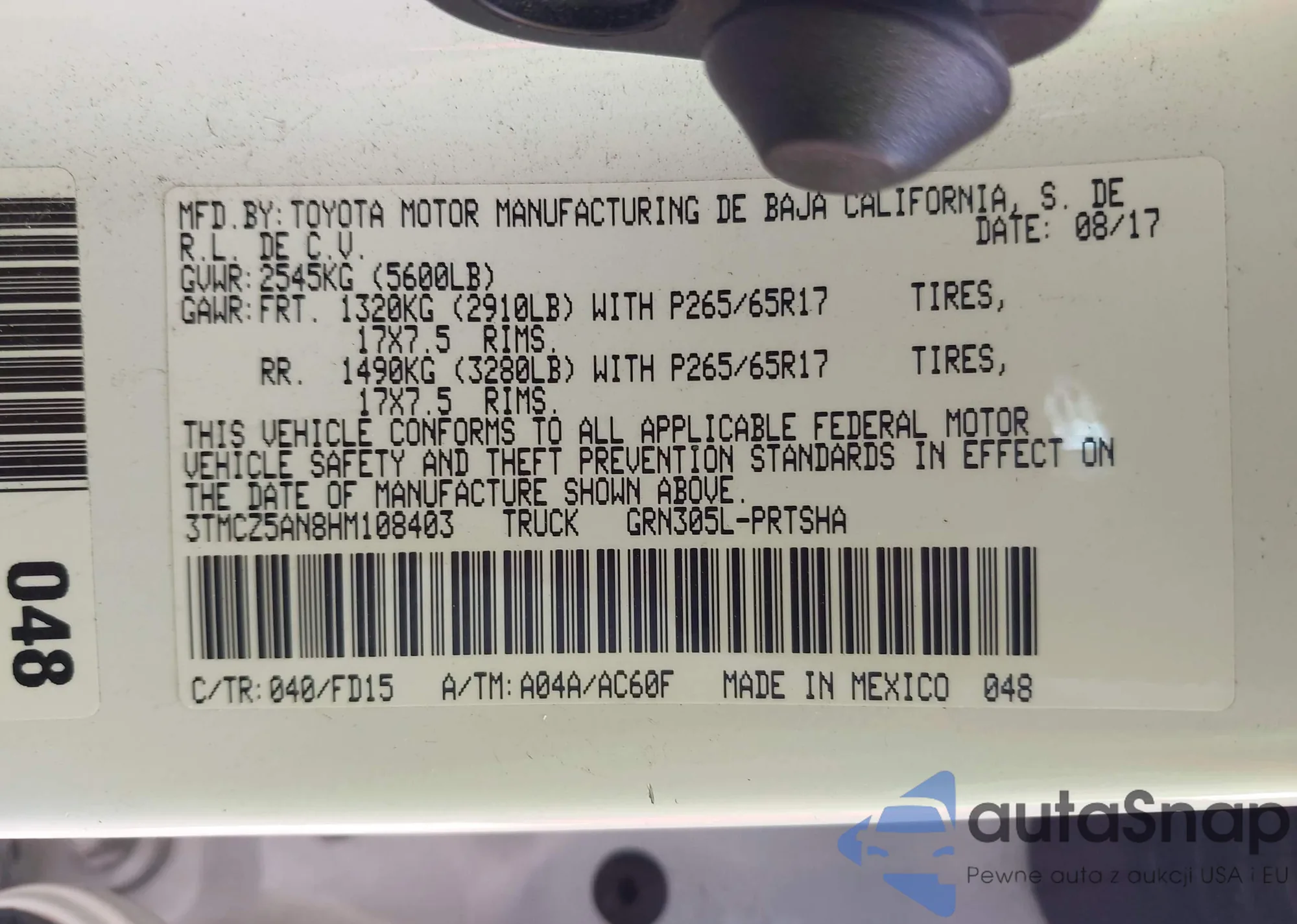 LOT: 43476775 VIN: JN8AY2NC8H9502844