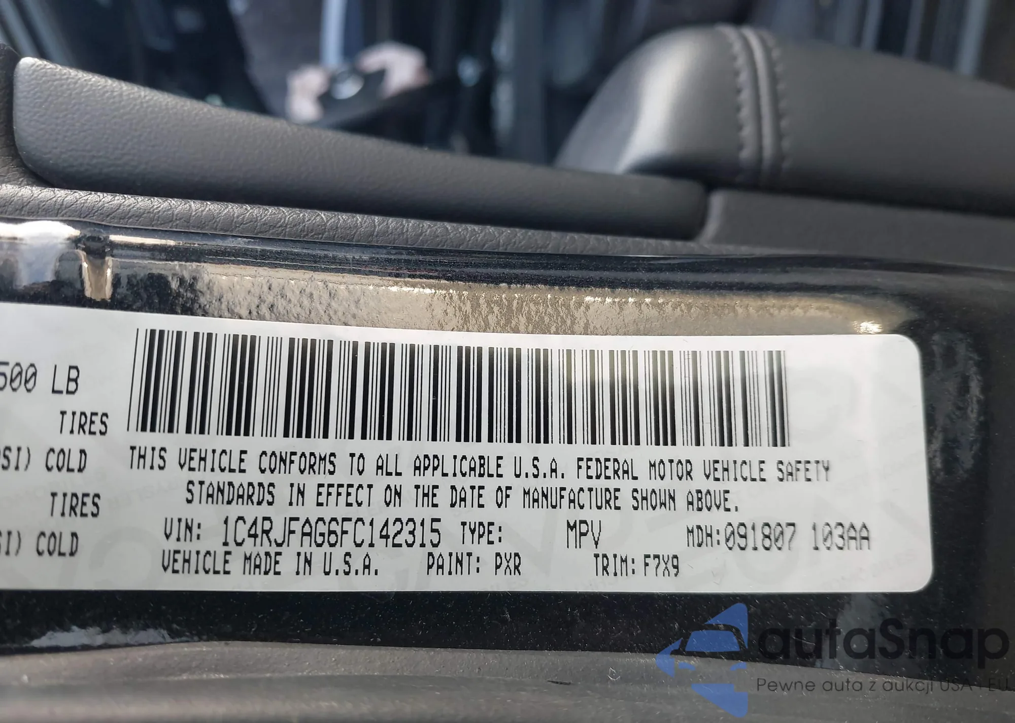 • VIN 1C4RJFAG6FC142315