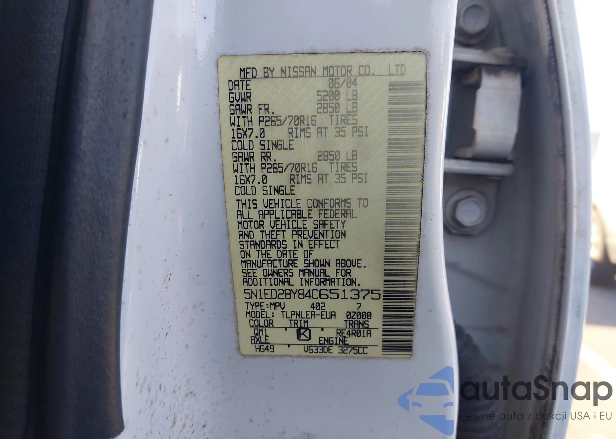 • VIN 5N1ED28Y84C651375