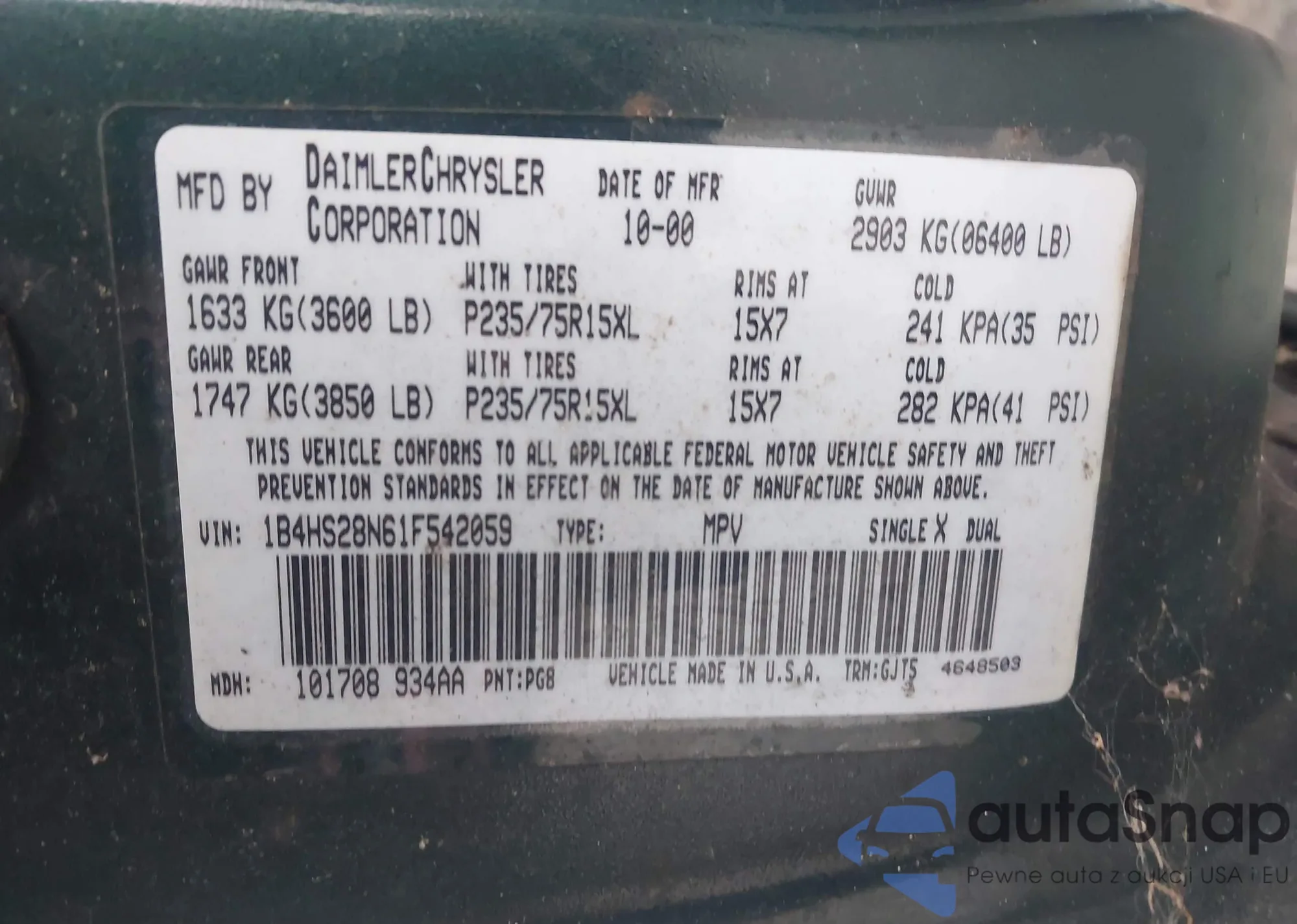 • VIN 1B4HS28N61F542059