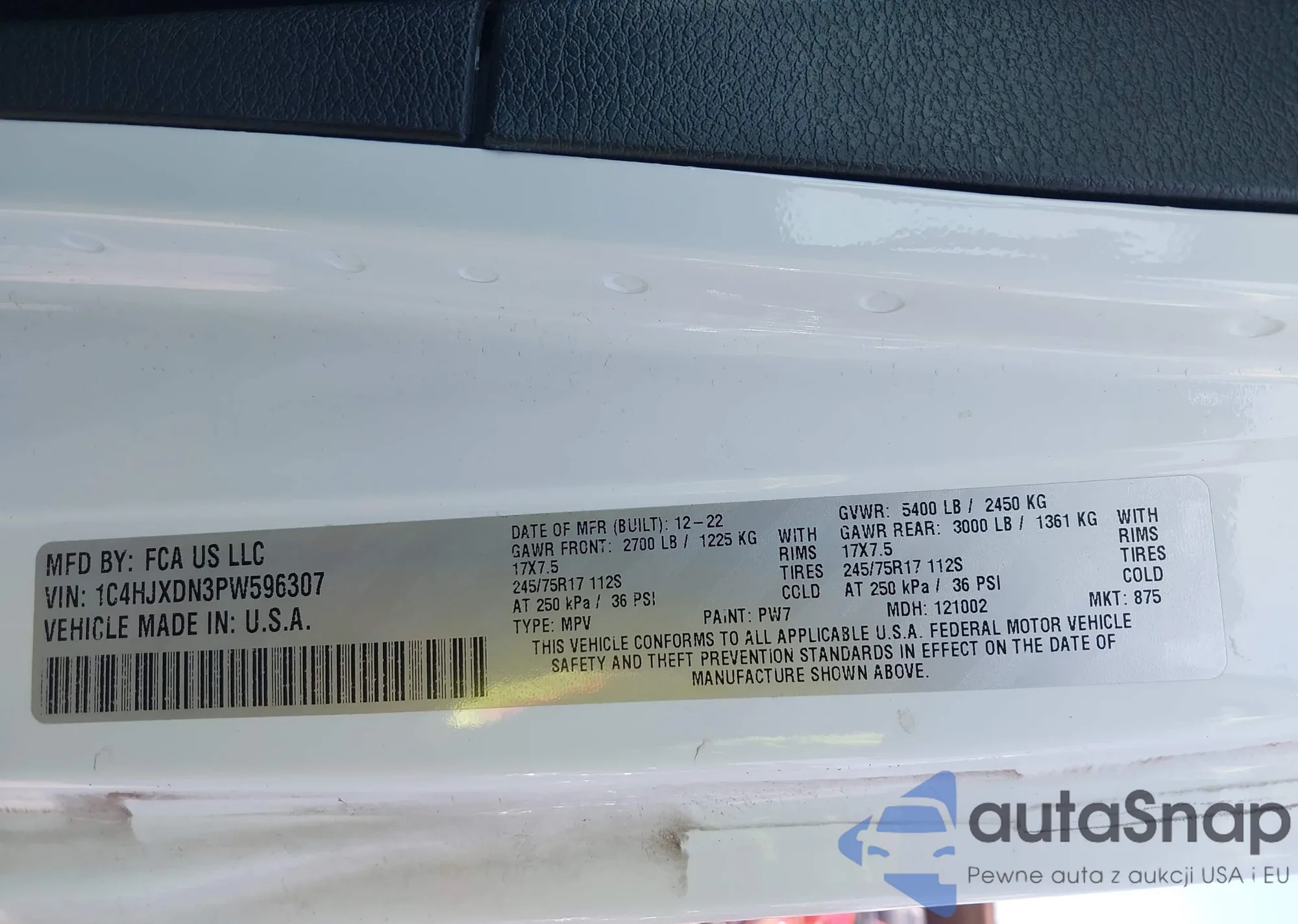 • VIN 1C4HJXDN3PW596307