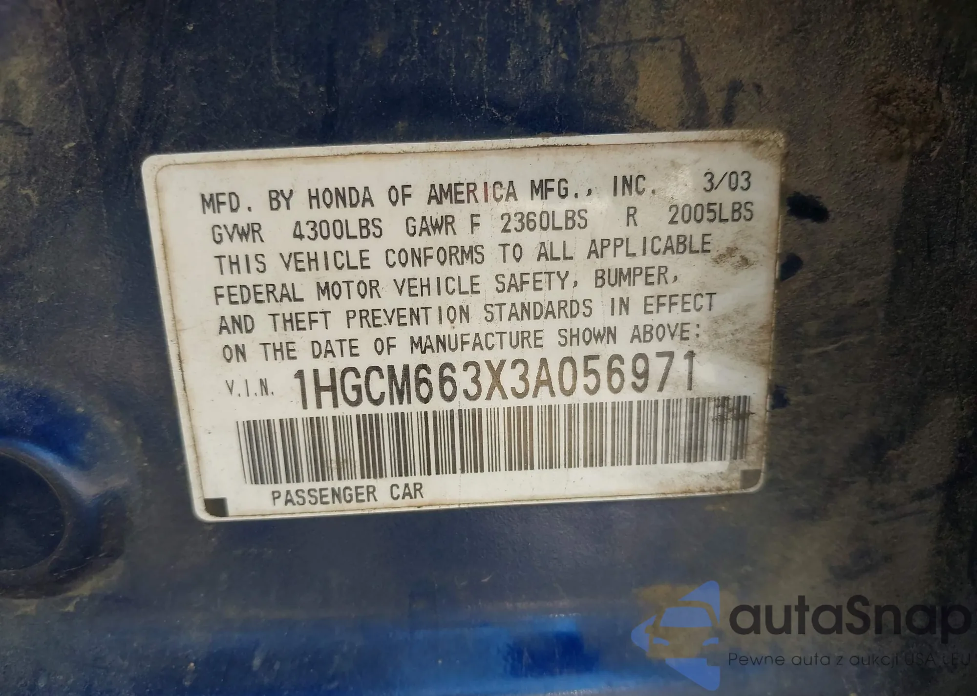 LOT: 43808156 VIN: JN1AZ34D43T109222