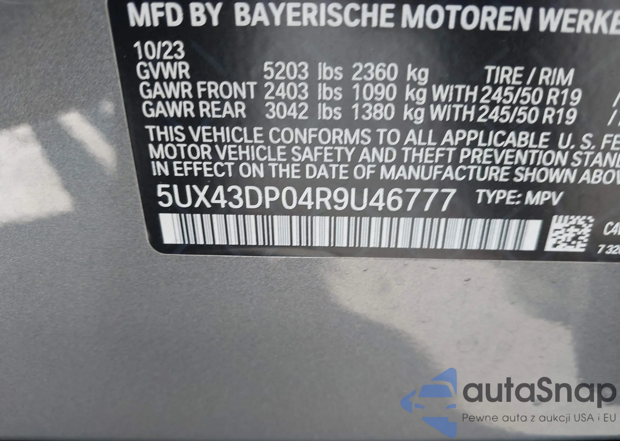 LOT: 43452339 VIN: 5UX43DP04R9U46777