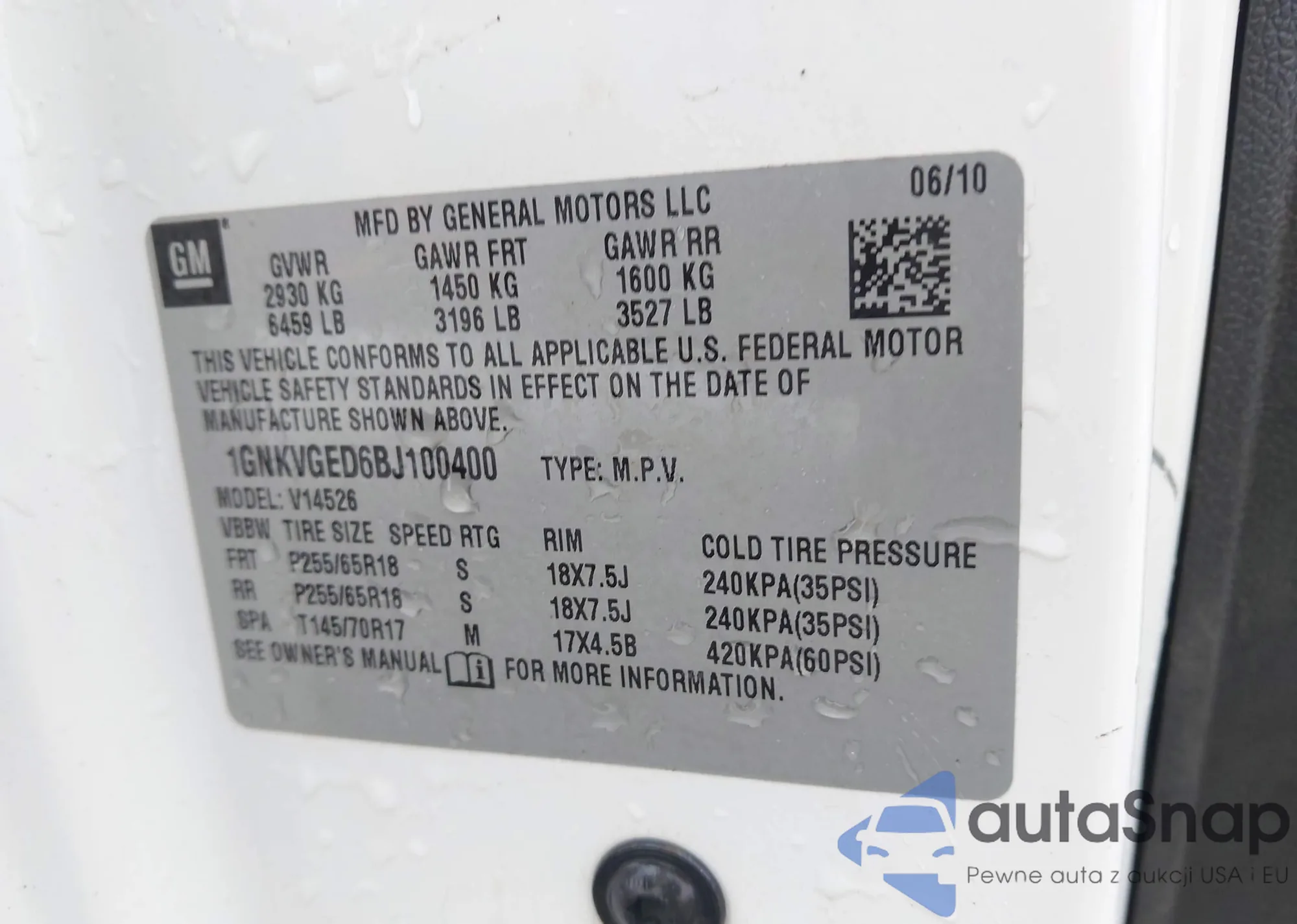 LOT: 43734879 VIN: 1GNKVGED6BJ100400