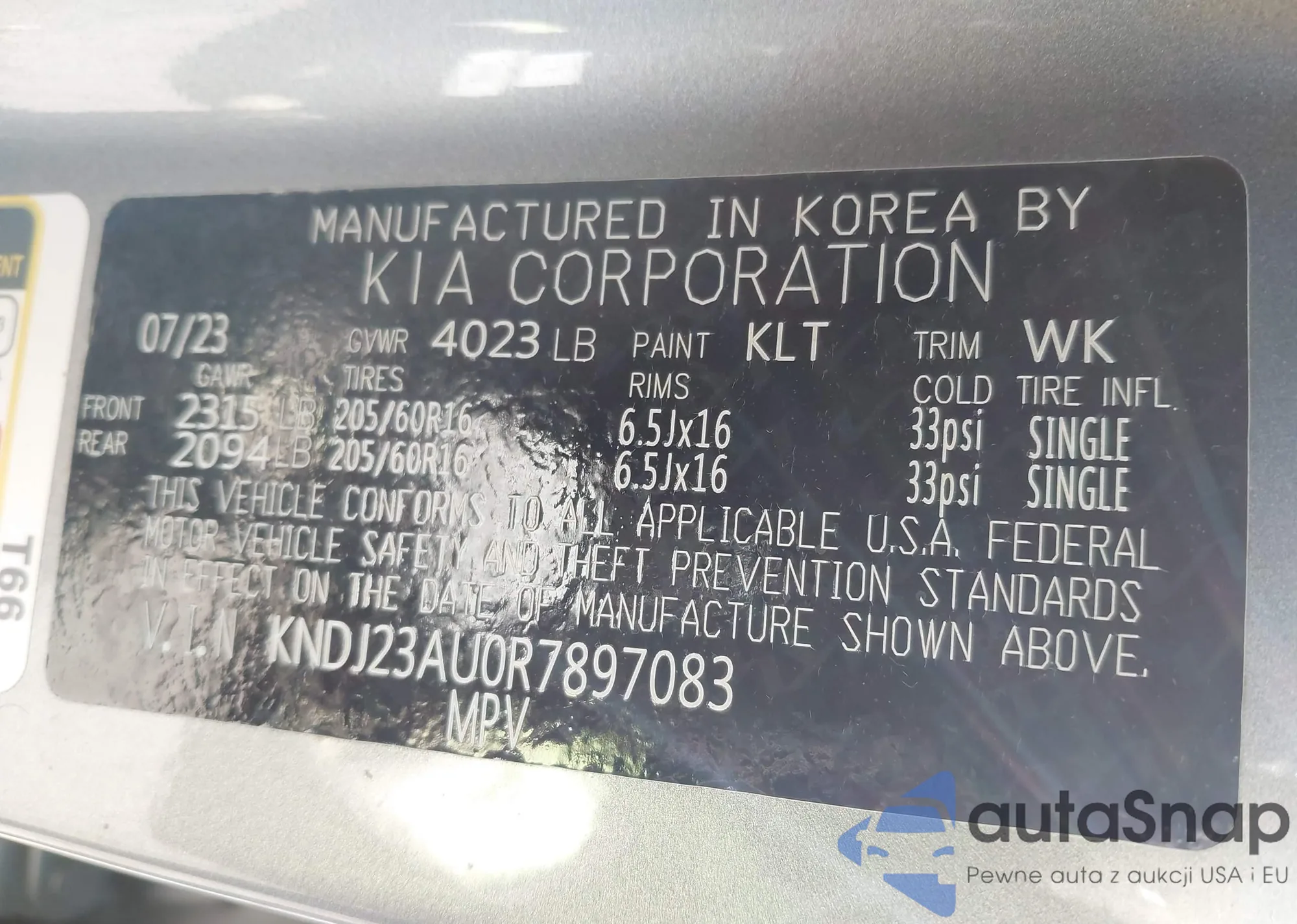 • VIN 5XYK53AF9PG012831