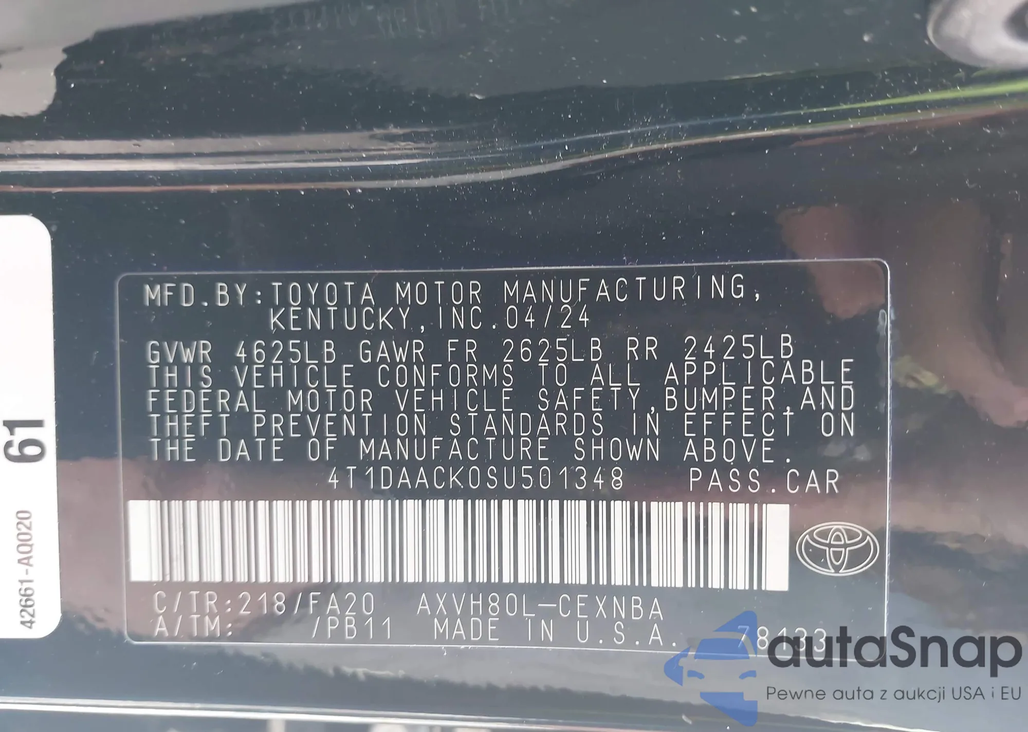 • VIN 4T1DAACK0SU501348
