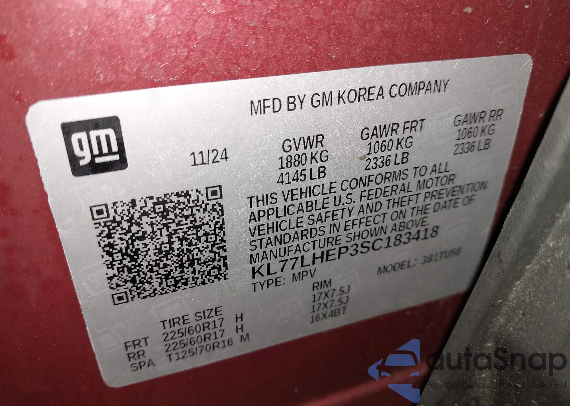 • VIN KL77LHEP3SC183418