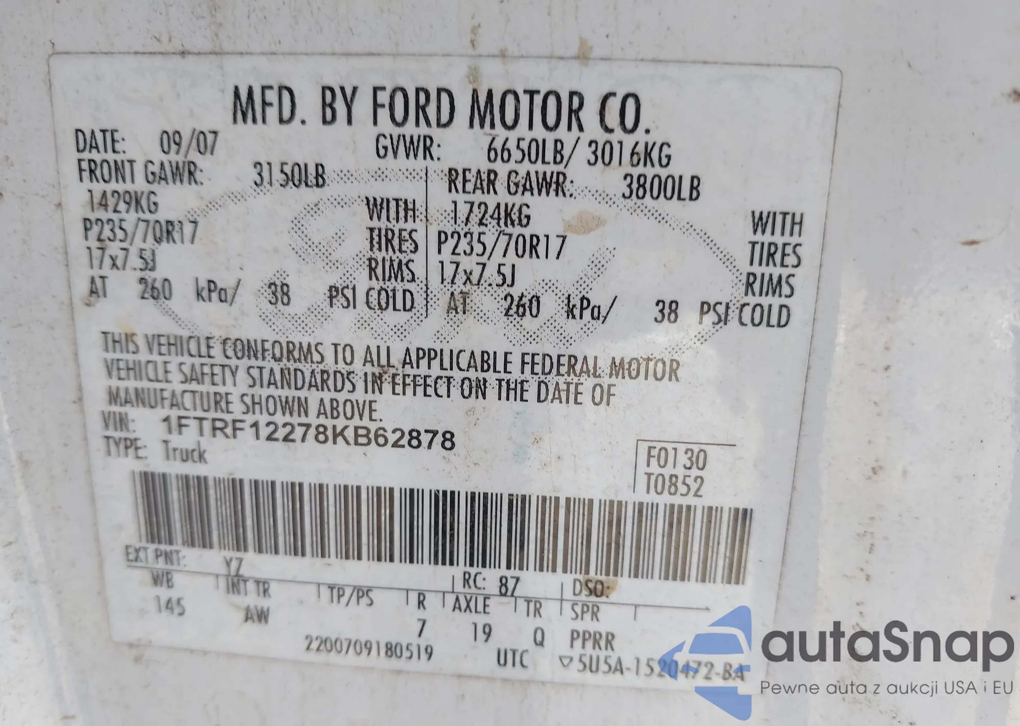 • VIN 1FTRF12278KB62878