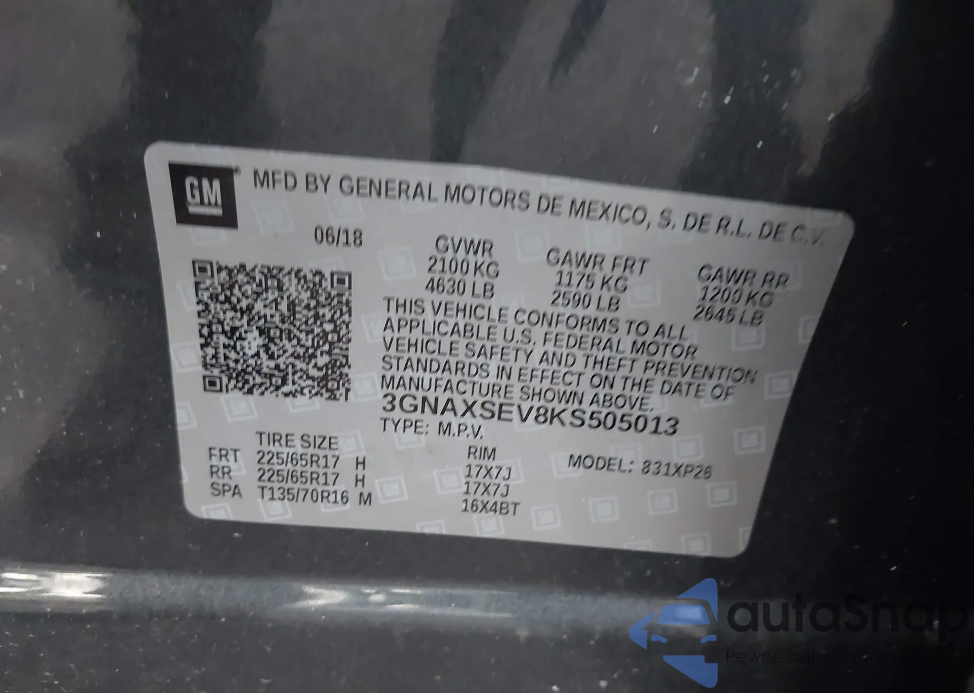 LOT: 43710530 VIN: 3GTUUCE88PG338127