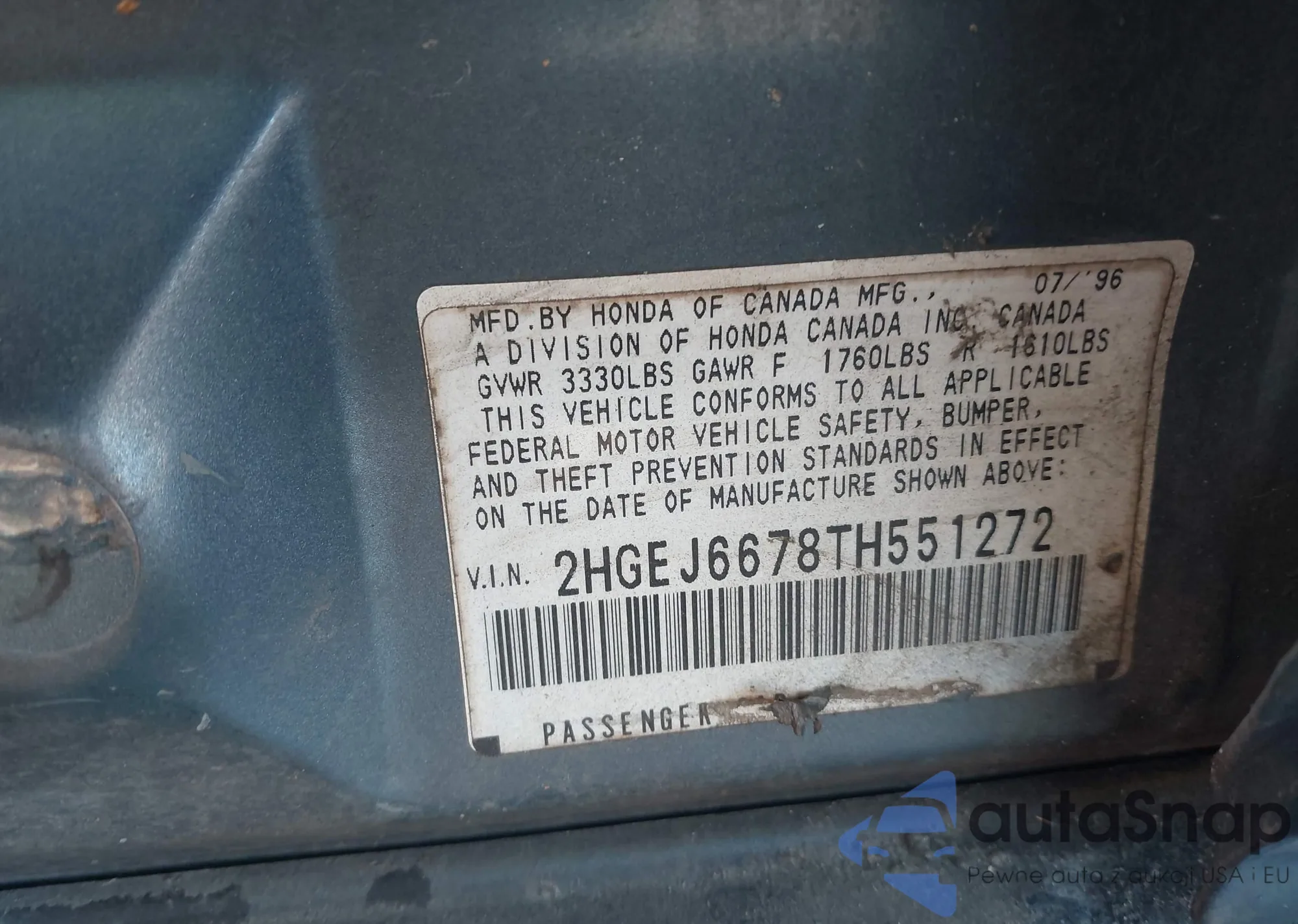 • VIN 2HGEJ6678TH551272