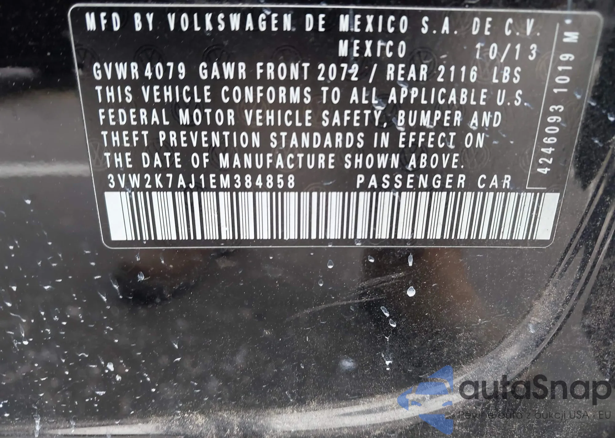 • VIN 3VW2K7AJ1EM384858