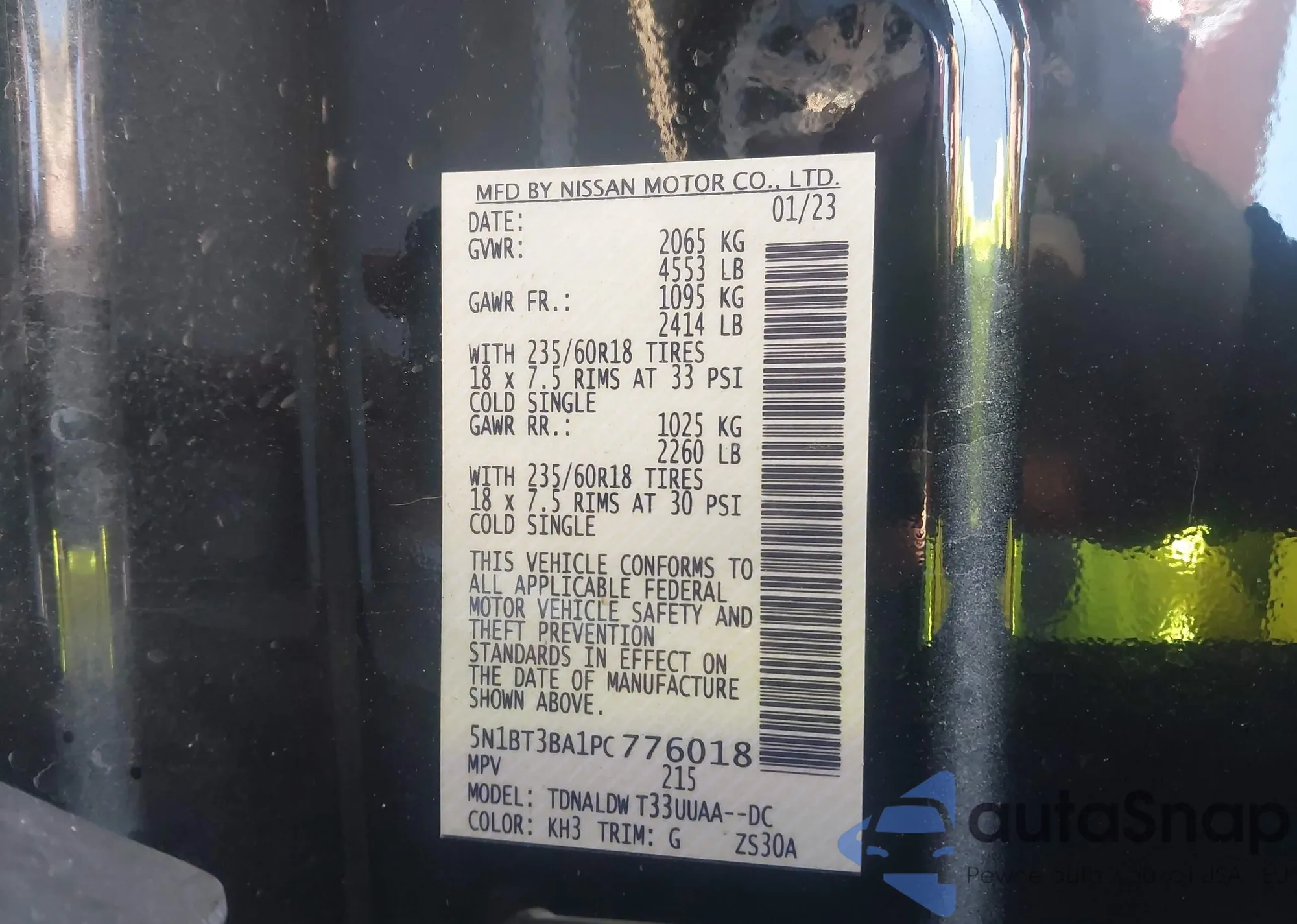 LOT: 43734525 VIN: 5N1BT3BA1PC776018
