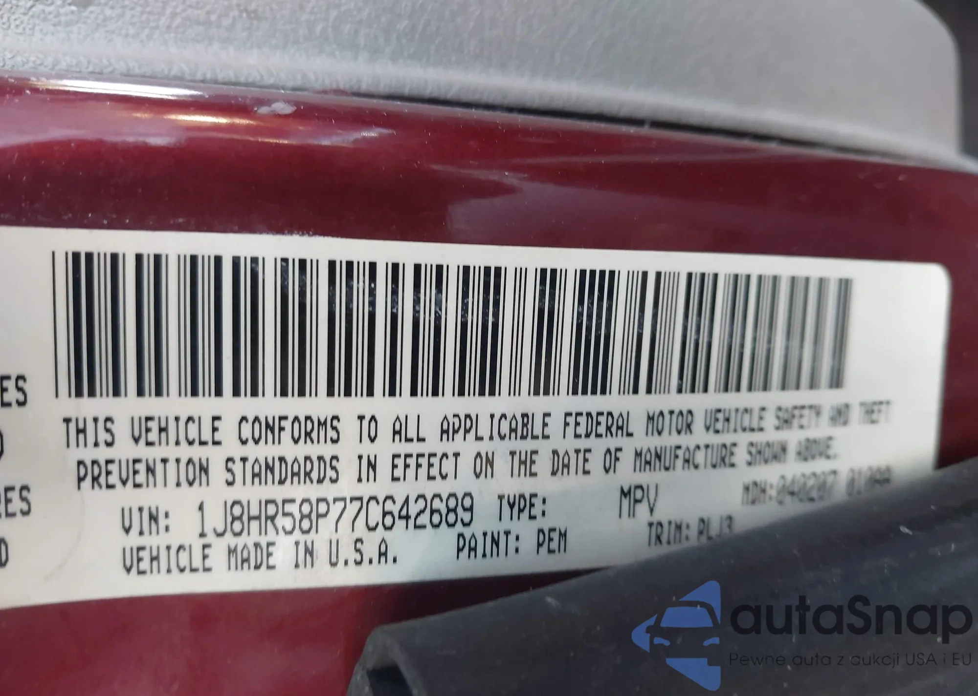 • VIN 1J8HR58P77C642689
