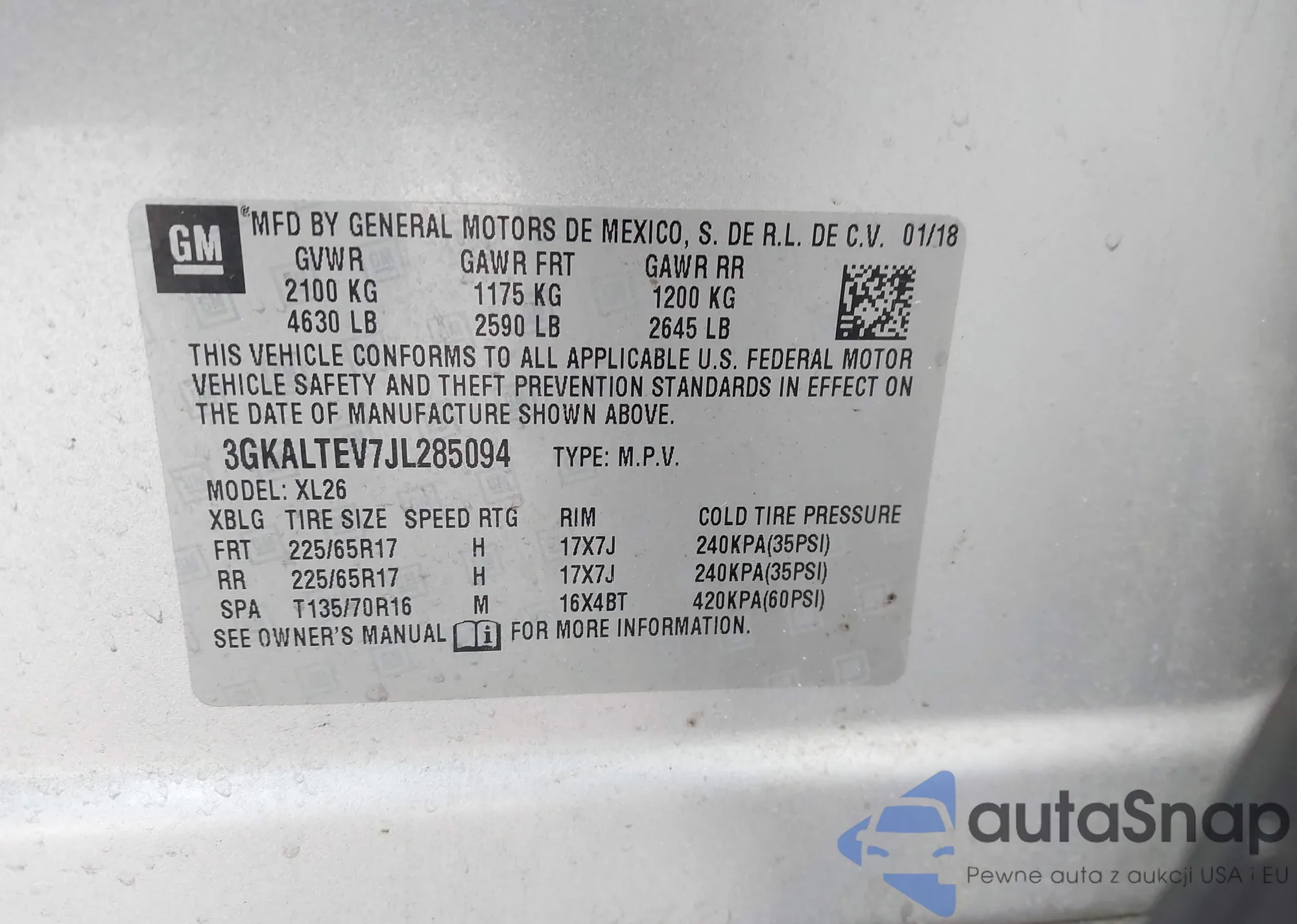 LOT: 43715834 VIN: WA1BCBFZ1PP024708