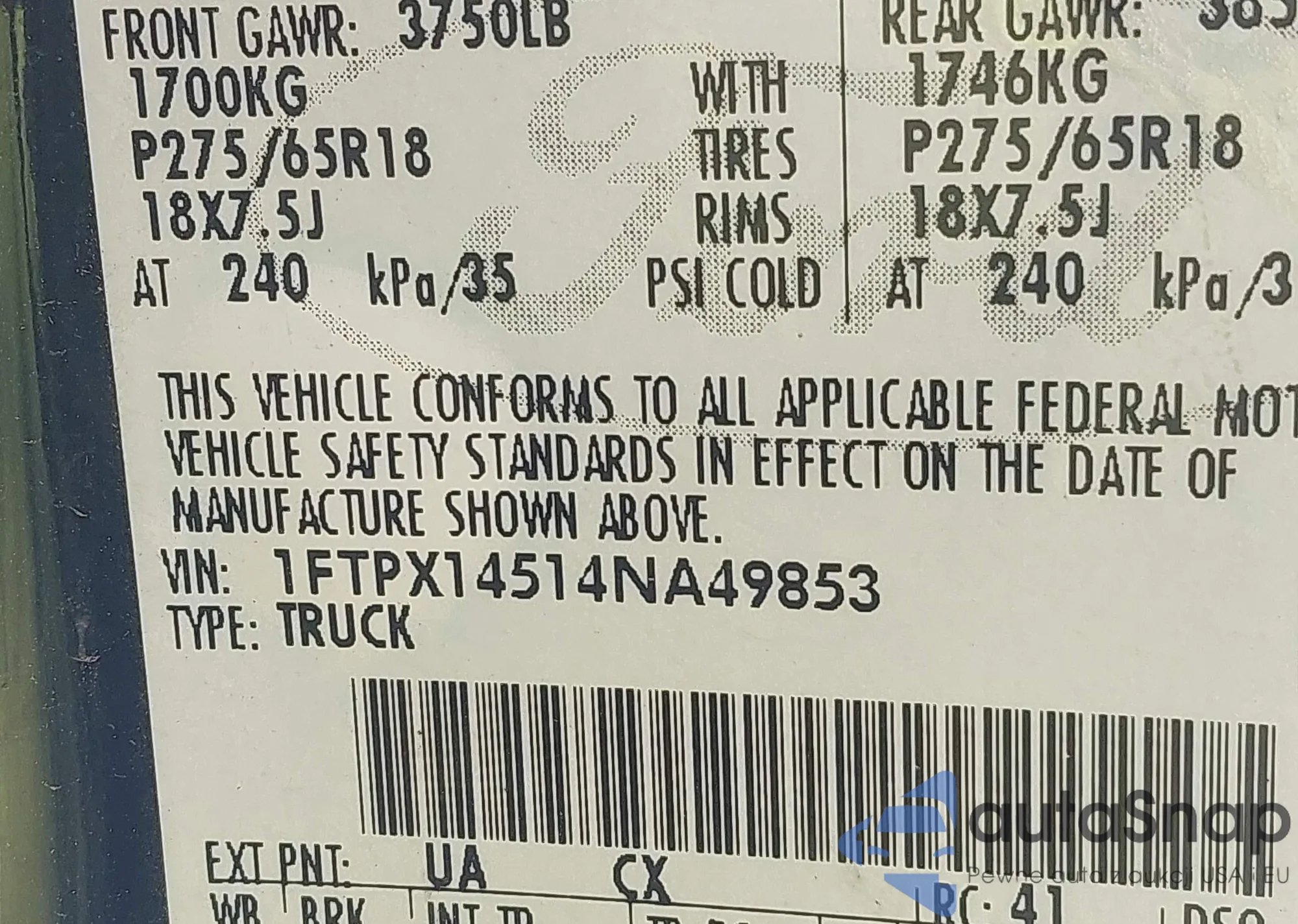 LOT: 43882717 VIN: 1FTPX14514NA49853