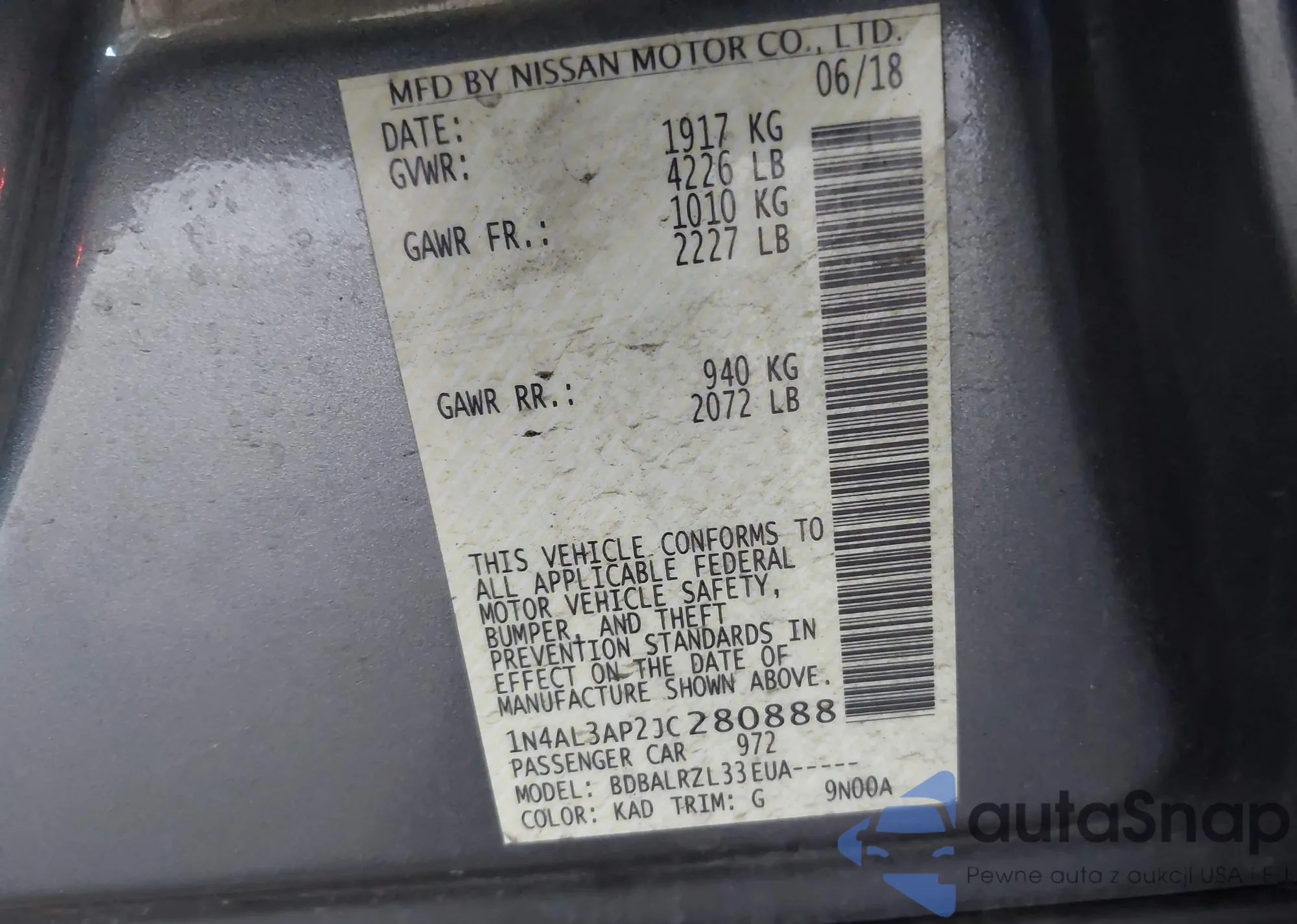 LOT: 44150932 VIN: 1N4AL3AP2JC280888