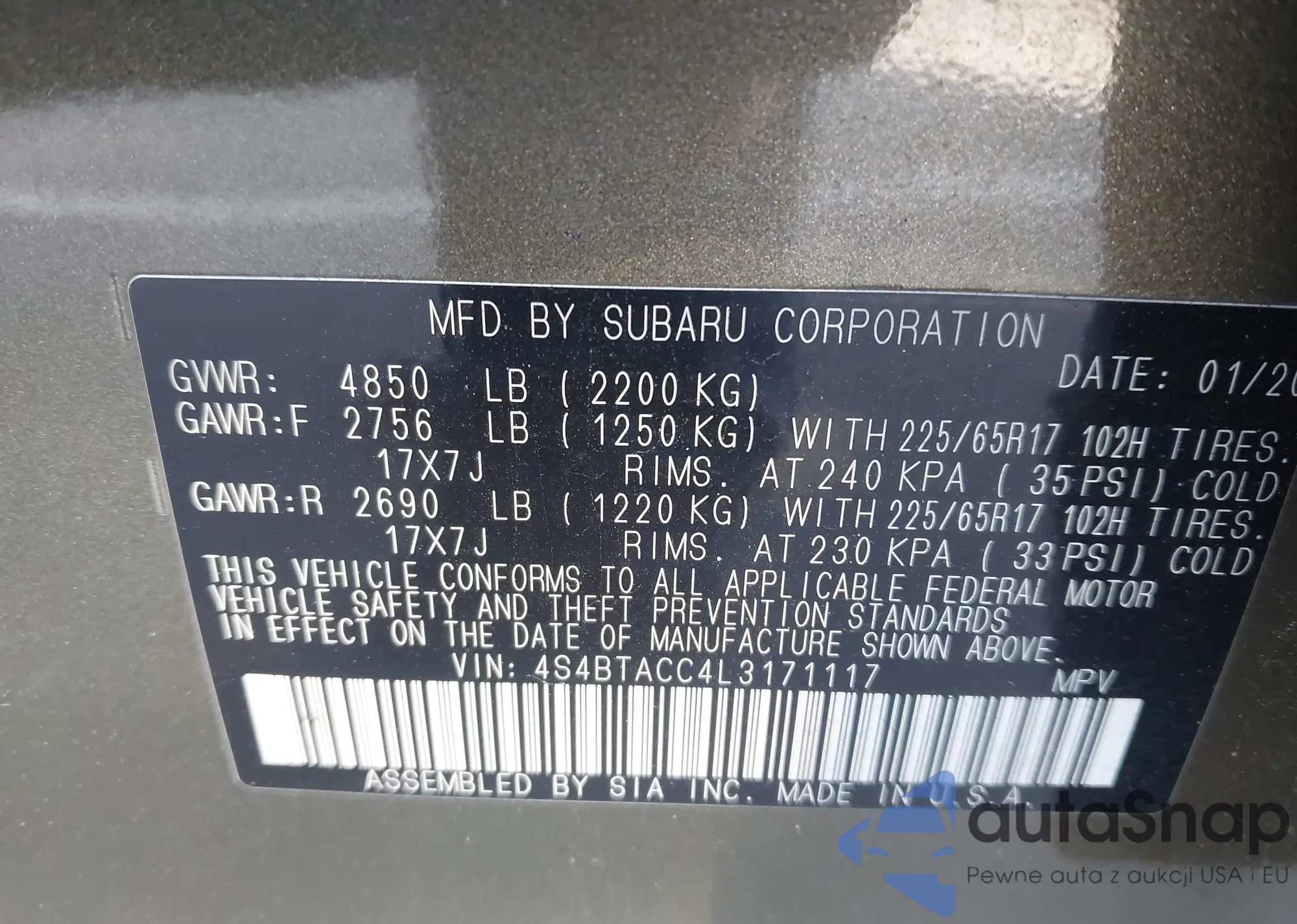 • VIN 4S4BTACC4L3171117