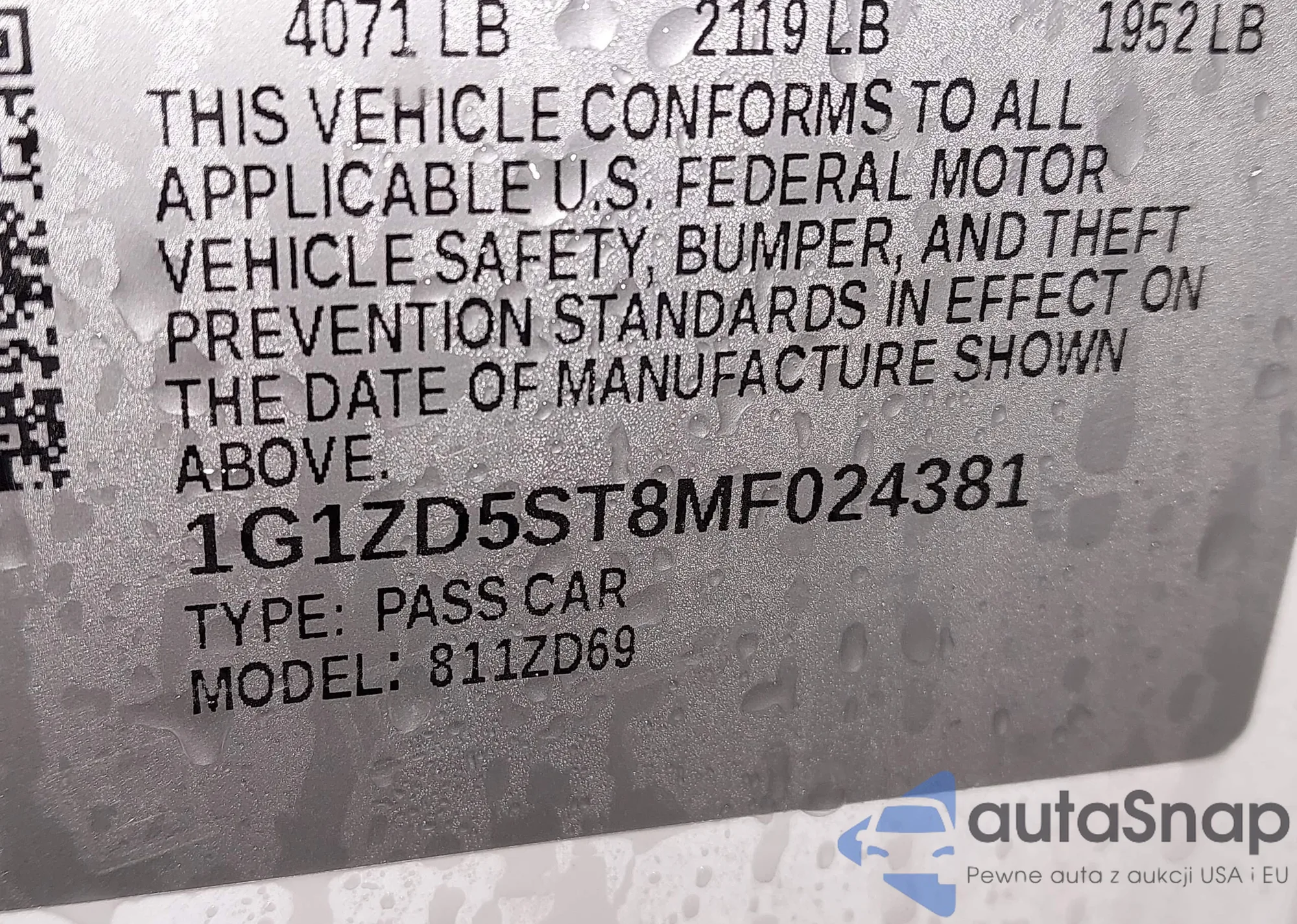 LOT: 43870550 VIN: JF1SG656X8H711020