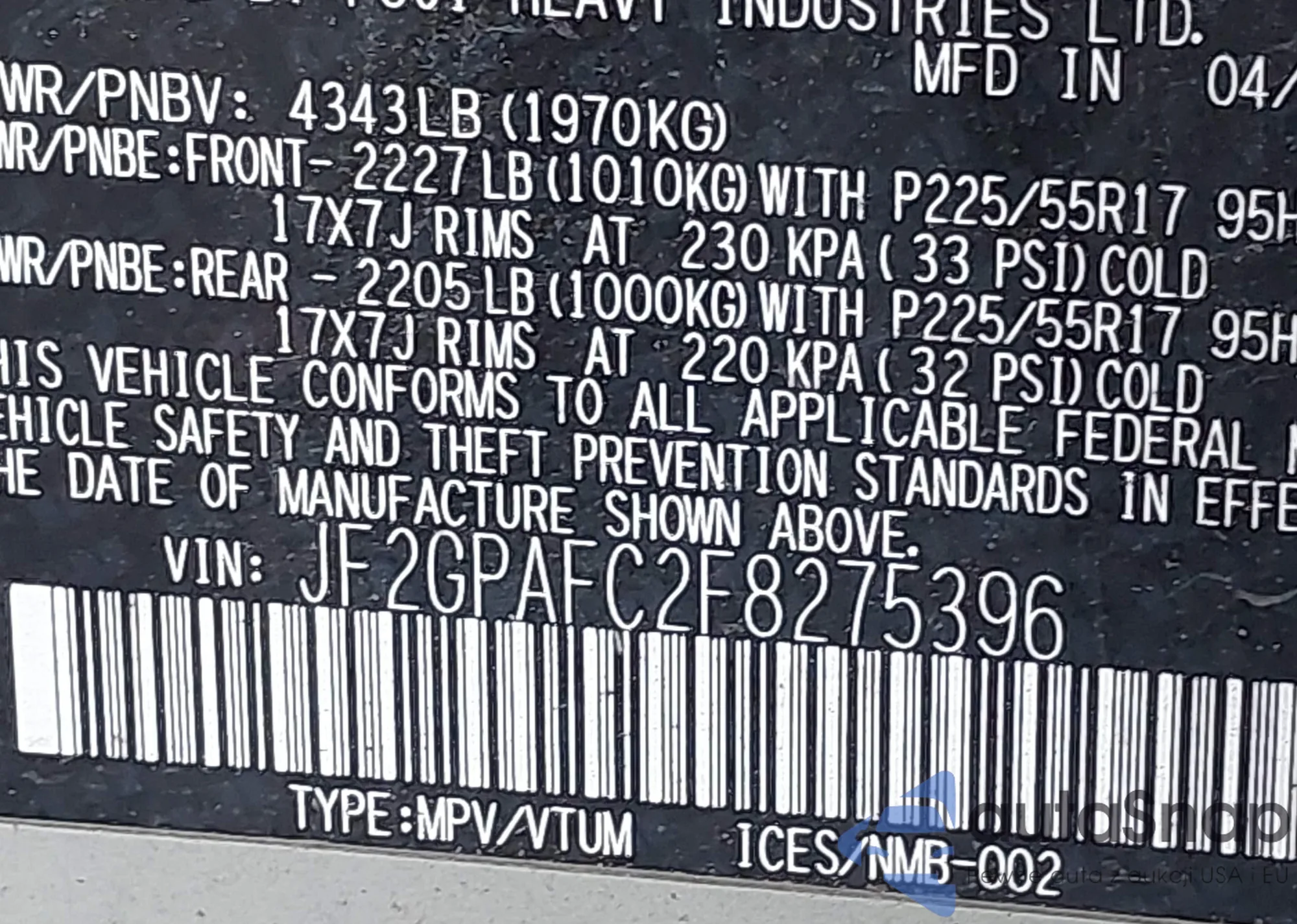 • VIN 4T1BF32KX2U523900