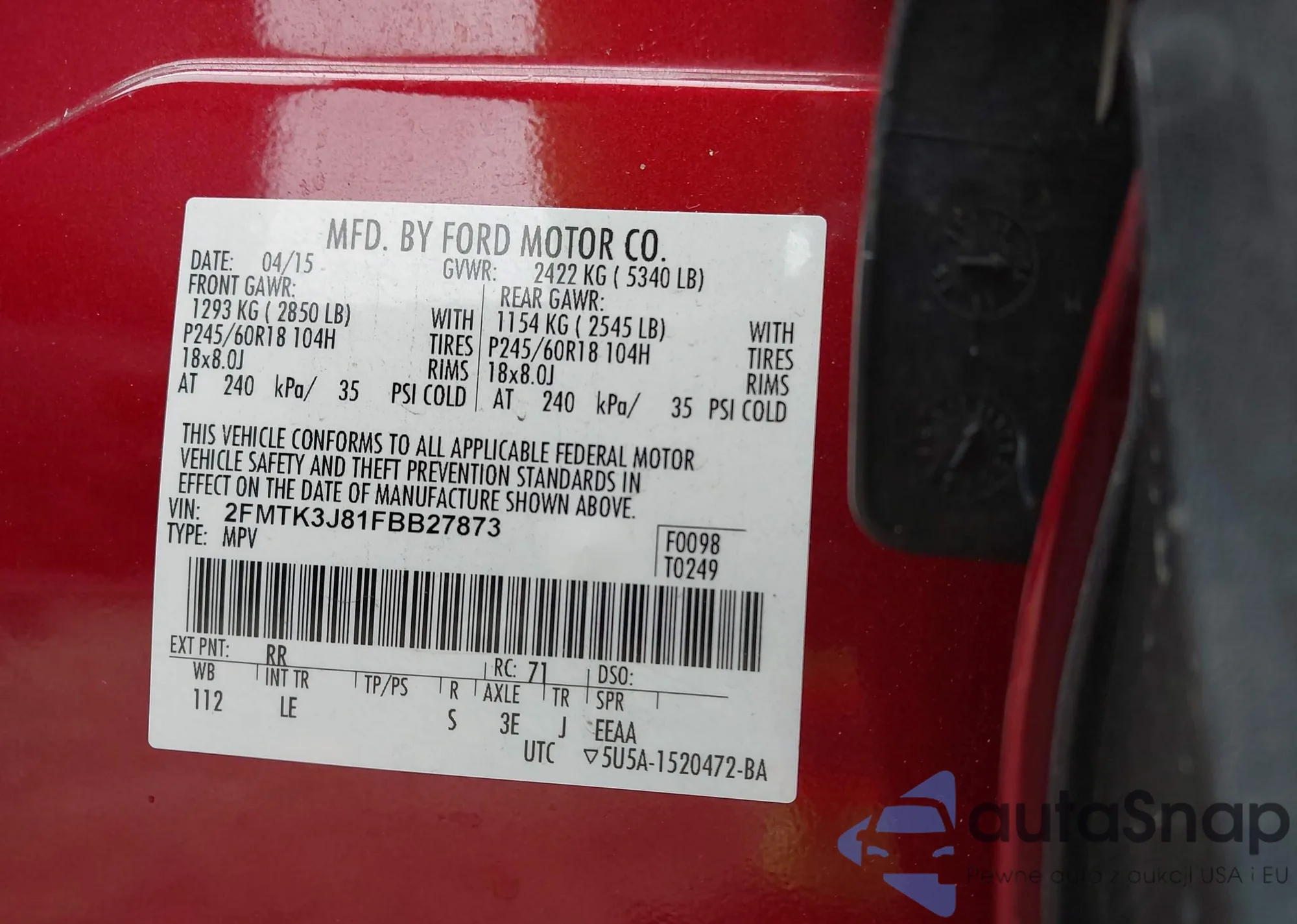 • VIN 2FMTK3J81FBB27873