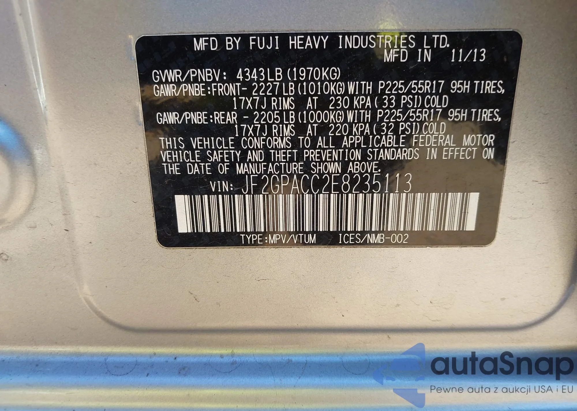 LOT: 43942804 VIN: 4S4BSBLC1F3202885