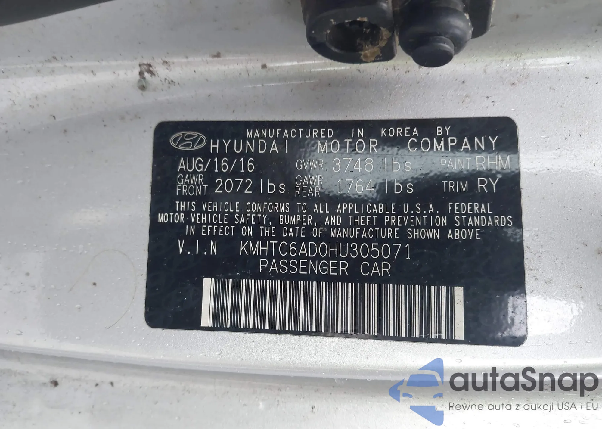 • VIN KMHTC6AD0HU305071
