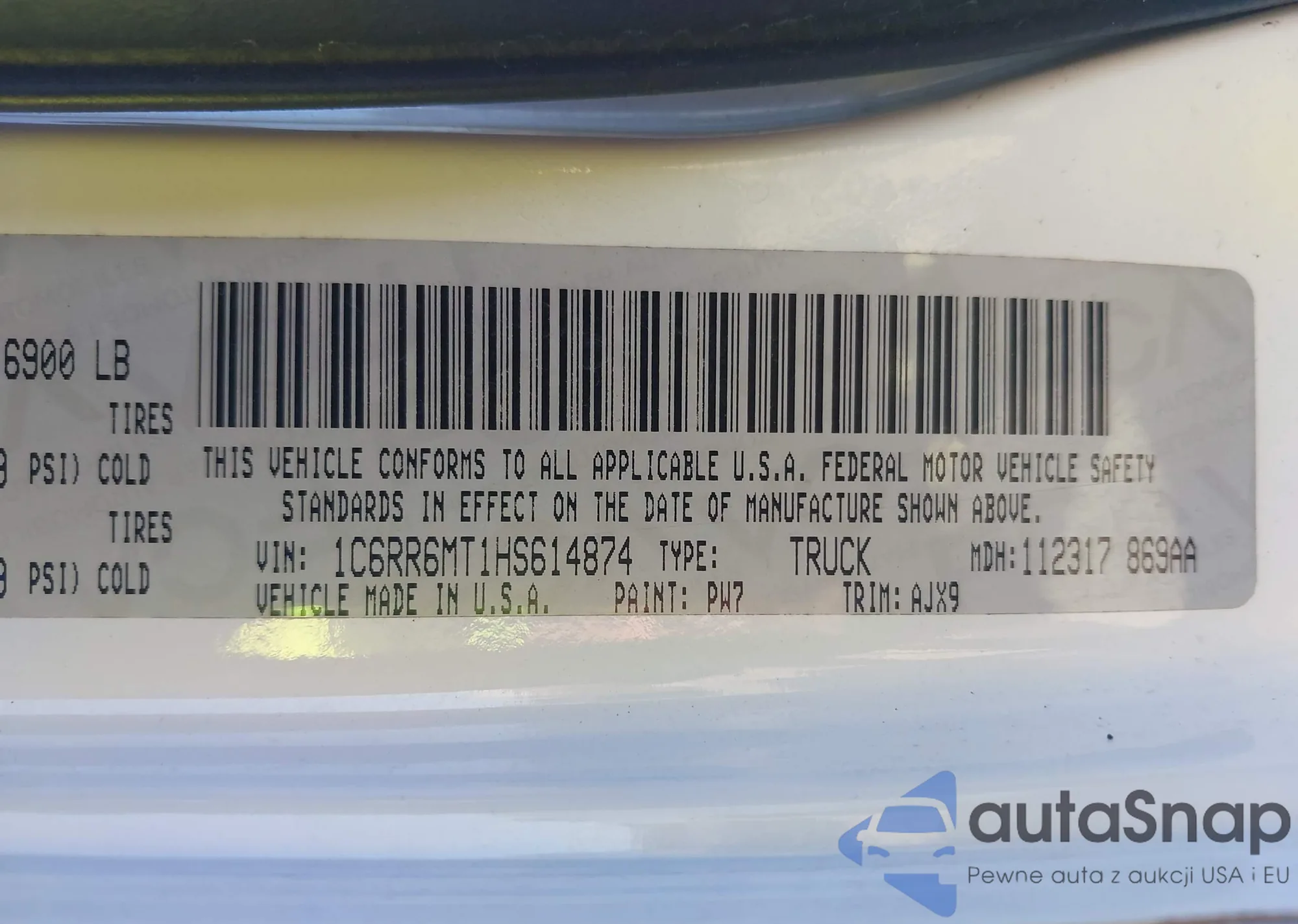 • VIN 1C6RR6MT1HS614874