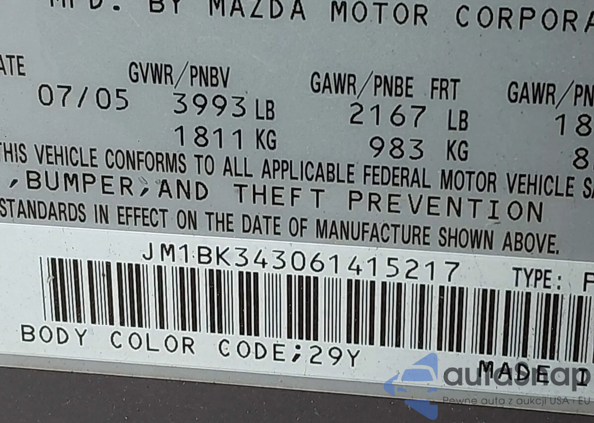 LOT: 43918979 VIN: JM1BK343061415217