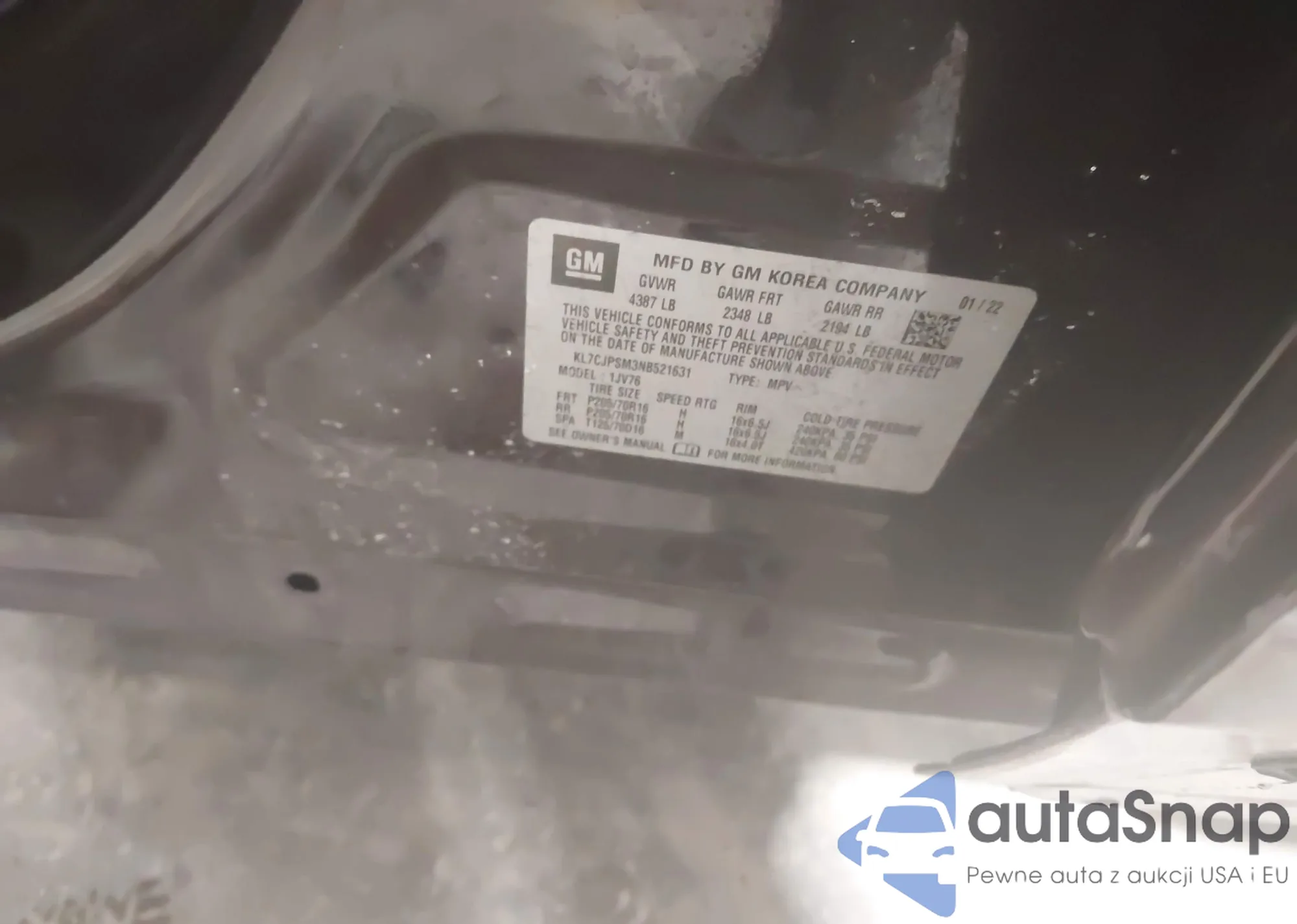 LOT: 43947051 VIN: KL7CJPSBXJB730762