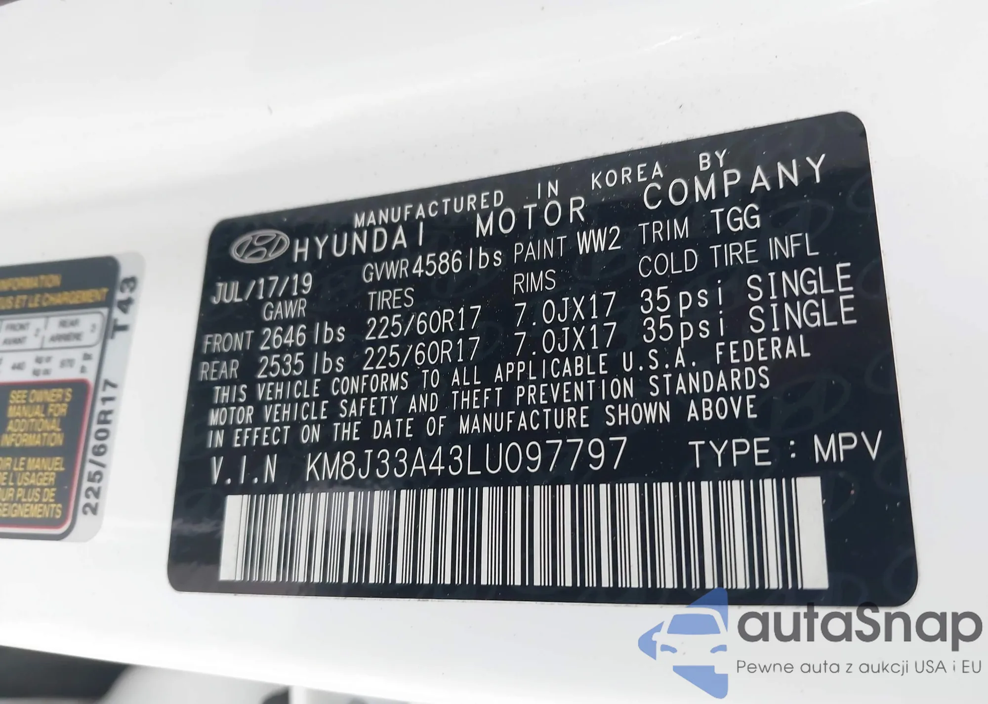 • VIN KM8J33A43LU097797